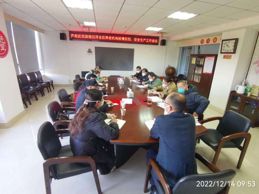为认真贯彻落实民政部、省民政厅召开的全国、全省民政“一老一小”服务机构疫情防控工作电视电话会议及市局召开的全市养老机构疫情防控、安全生产工作视频会议精神,12月14日上午,芦淞区民政局组织辖区内10家养老机构负责人召开全区疫情防控和安全生产工作会议。会上传达了国务院、省民政厅疫情防控工作视频会议精神,认真学习第九版防控方案、国务院联防联控机制“二十条”措施、“新十条”和《新冠重点人群健康管理服务工作方案》的具体要求,部署当前芦淞区民政系统的疫情防控和安全生产工作。