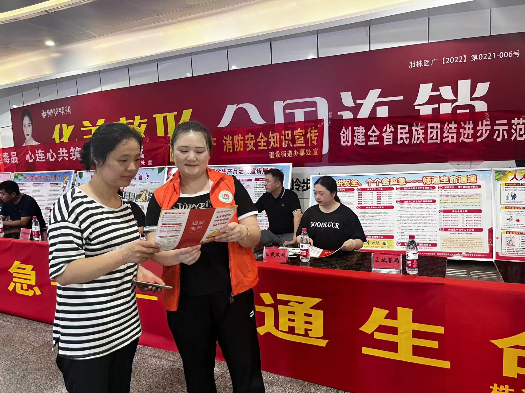 6月14日上午,区民政局联合区城管局、区市场监管局、区科工信局、芦淞消防救援大队等部门,在中心广场地下厅开展“安全生产月”咨询日活动。此次咨询日以“人人讲安全、个个会应急——畅通生命通道”为主题。