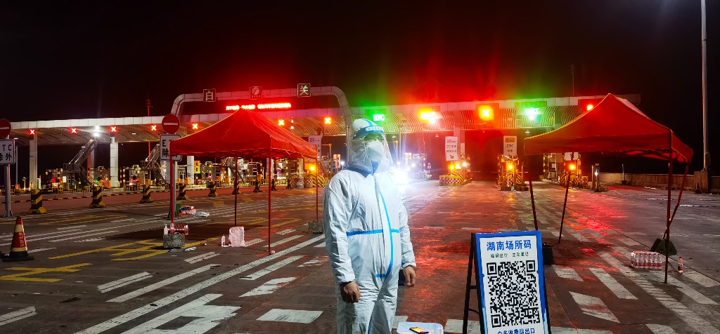 组织人员在高速路口对进出车辆进行双码、核酸查验