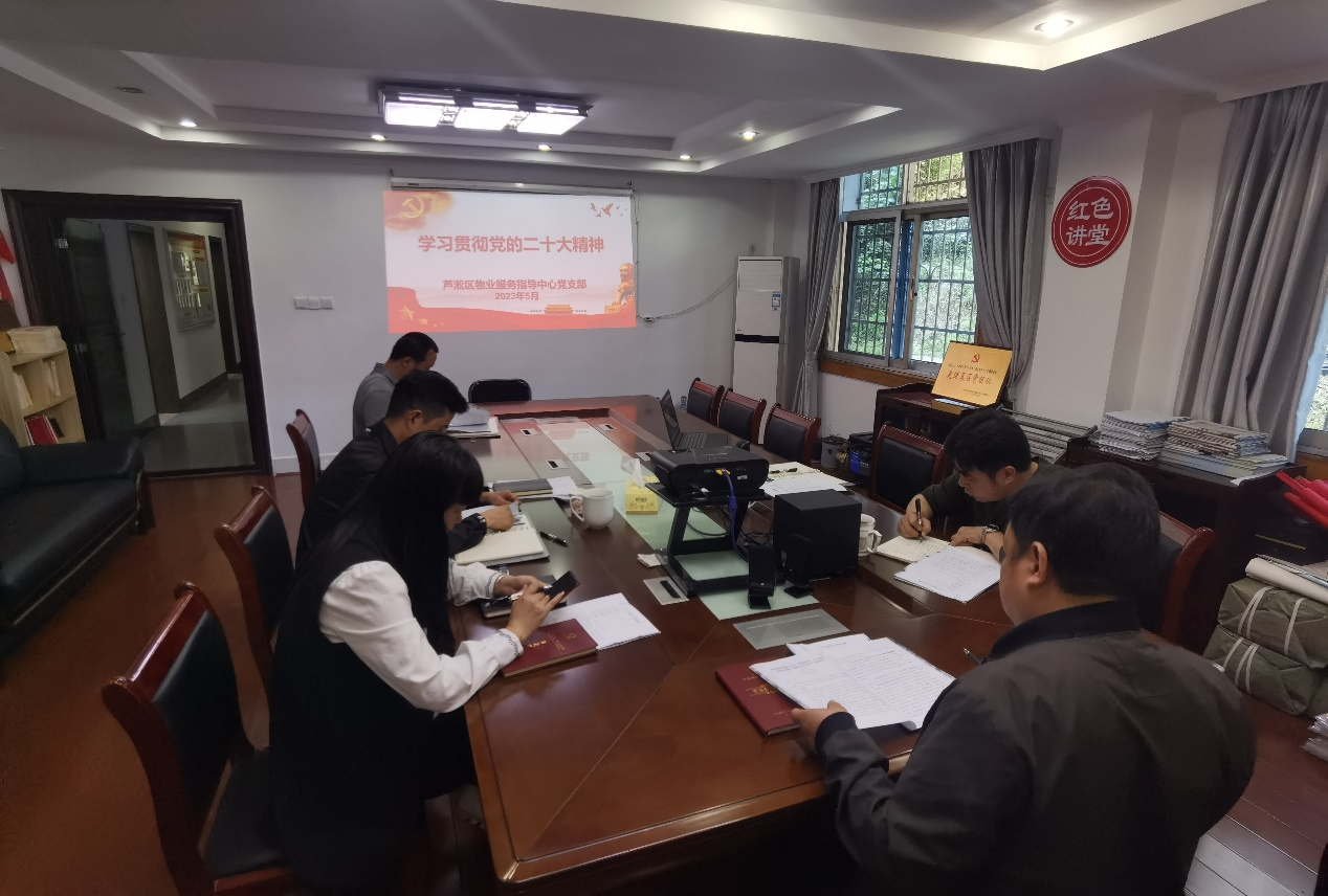 5月8日上午,在物业服务指导中心3楼会议室召开5月份“一月一课一片一实践”活动,活动内容为讲党课《学习贯彻党的二十大精神》,本次党课由物业服务指导中心支部书记授课,党员全体参加学习。 会上集中学习了《学习贯彻党的二十大精神》,并积极开展集体研讨,深入学习领会党的二十大精神。