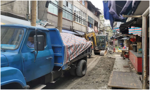 当天上午,建设巷内,一台工程车正在作业,这条长约400米的巷子两边,有71户经营户,十多年来,他们自发在这里形成了一个马路市场,虽然方便了周边居民日常购物,但是,由于巷子建设年代久远,基础设施有点跟不上。经营户老刘告诉记者,一到下雨天,行人都无法正常通过:“因为它是一条砖路,时间长了就松动了,一到下雨或者两边住户排污水多了,人一踩到松的砖,很容易溅一腿脏水,很难受,再一个,下水道也堵了,雨下大了就淹了,水排不出去。”