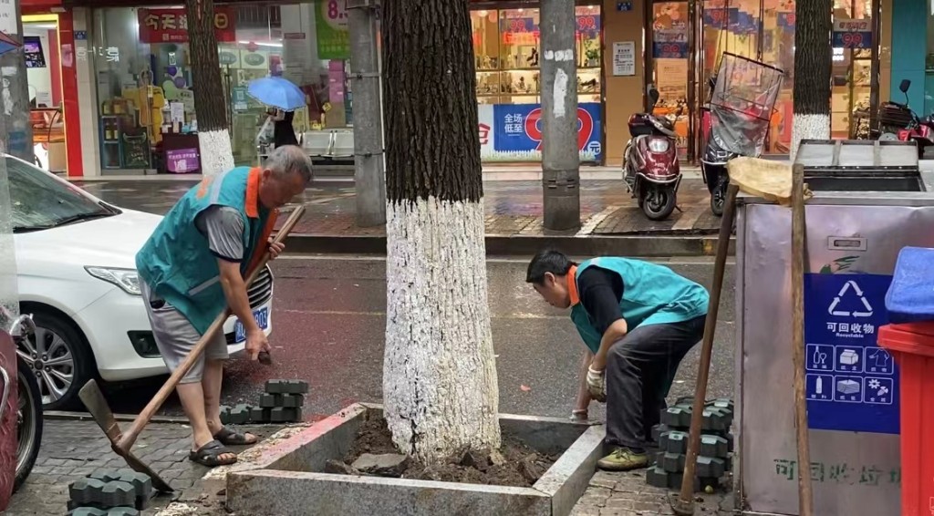 哪里有黄土裸露、死苗缺株、杂草丛生、苗木徒长、病虫侵袭、设施损毁、绿地侵占等问题,哪里就有绿衣人的身影。他们休息时间不多,有时要到外面吃盒饭解决温饱问题,有时要早出晚归处理应急问题,有时要默默忍受别人的刁难……面对脏、累、烦,“苦”对于绿衣人来说已经成了习惯。
