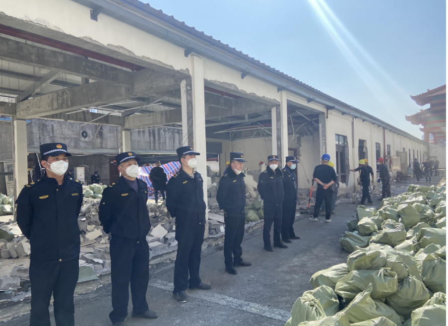 2023年1月13日,芦淞区城管局组织人员依法对株洲雅立实业有限责任公司在芦淞区人民南路芦淞大市场第七层顶上未经规划行政主管部门许可违章搭建的管理、设备用房共六处,面积718.68平方米的钢架、砖混结构建筑物进行强制拆除。 据悉,该处违建由钢架结构为主多种材料混搭建成,建筑年限久远,又地处服饰商业中心地段,存在严重安全隐患,威胁群众生命财产安全。为杜绝事故发生,芦淞区城管部门为消除安全隐患,组织人员进行了拆除,由于大型机械在楼顶难以实施,采用了人工拆除。