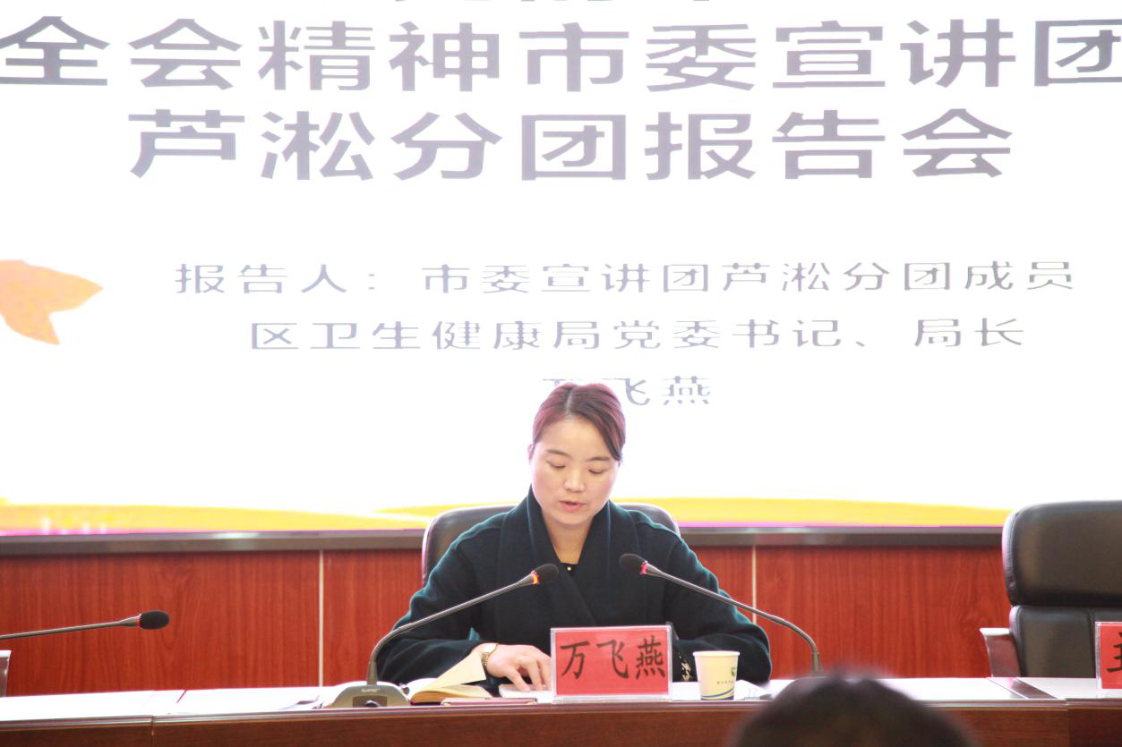 报告会上,市委宣讲团芦淞分团成员,区卫健局党委书记、局长万飞燕通过六个“充分认识”,围绕党的十九届五中全会召开的重大意义、主要精神以及总书记考察湖南重要讲话精神展开宣讲。报告主题鲜明、内容丰富、生动务实,对于全面理解、准确把握党的十九届五中全会提出的新思想、新观点、新要求,具有很强的指导、引领、助推作用。
