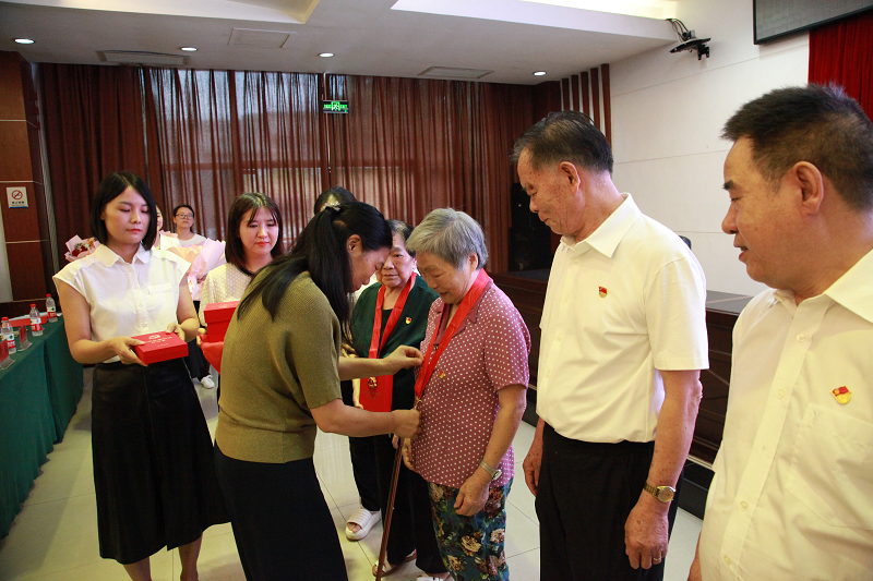 区政府党组成员、副区长段可文向老党员颁发“光荣在党50年”纪念章