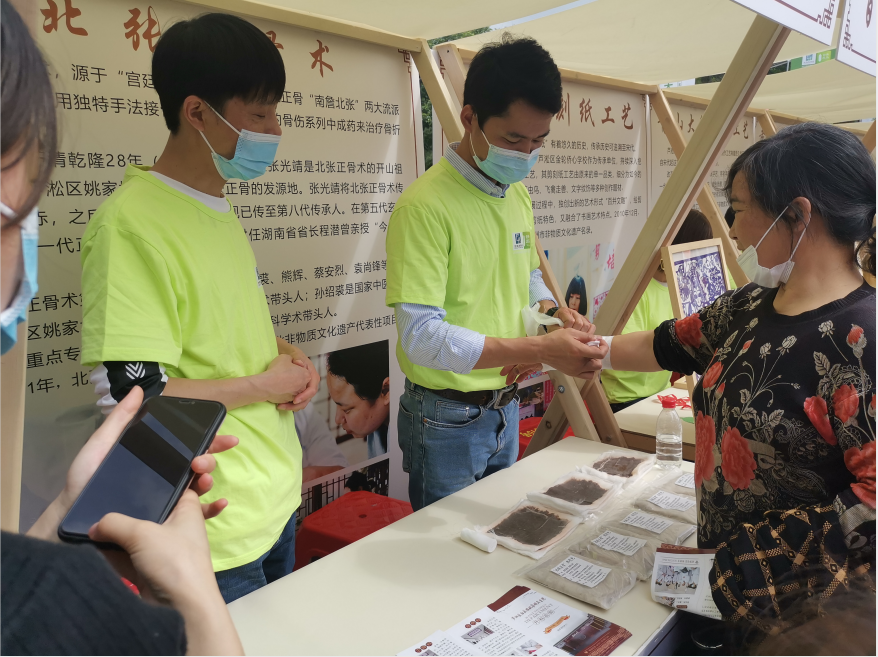 当天,株洲市委副书记、政法委书记胡长春、芦淞区委书记唐卫湘等市、区领导纷纷来到北张正骨展位,了解北张正骨术的传承和发展状况,勉励姚家坝卫生院继续传承和发扬北张正骨术精髓,为更多的患者服务。姚家坝卫生院的医生们带来了北张正骨祖传的伤药包、热敷包,免费赠送给有需要的市民。医生们还现场为市民看诊。有些市民经过医生现场手法复位、推拿后,顿感疼痛减轻、身体舒服。