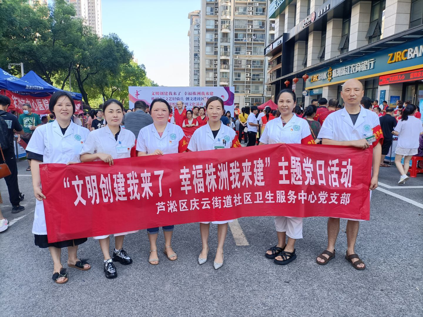6月25日上午,庆云街道社区卫生服务中心党支部在锦绣江山小区开展“文明创建我来了,幸福株洲我来建”为主题的志愿服务活动。
