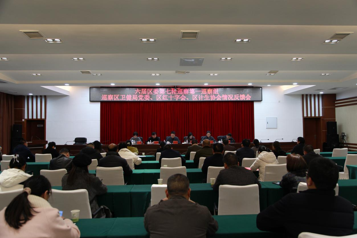 区委第一巡察组组长龙江伟作巡察情况反馈,在肯定区卫健局、区红十字会、区计生协会的成绩同时也发现了一些问题,主要是:担当意识不强,履行职责使命有短板;全面从严治党落实不力,财务管理有漏洞;政治站位不够高,落实上级决策部署有差距;风险意识不足,卫健事业高质量发展有隐患;理论学习不深,基层党组织工作有不足。
