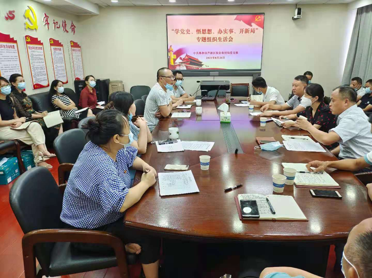 8月26日,芦淞区农业农村局党支部召开"学党史、悟思想、办实事、开新局"专题组织生活会,推动党史学习教育的成效不断走深走实。支部书记颜纲主持会议,全体党员干部参加会议。区委党史学习教育第二巡回指导组到会指导。