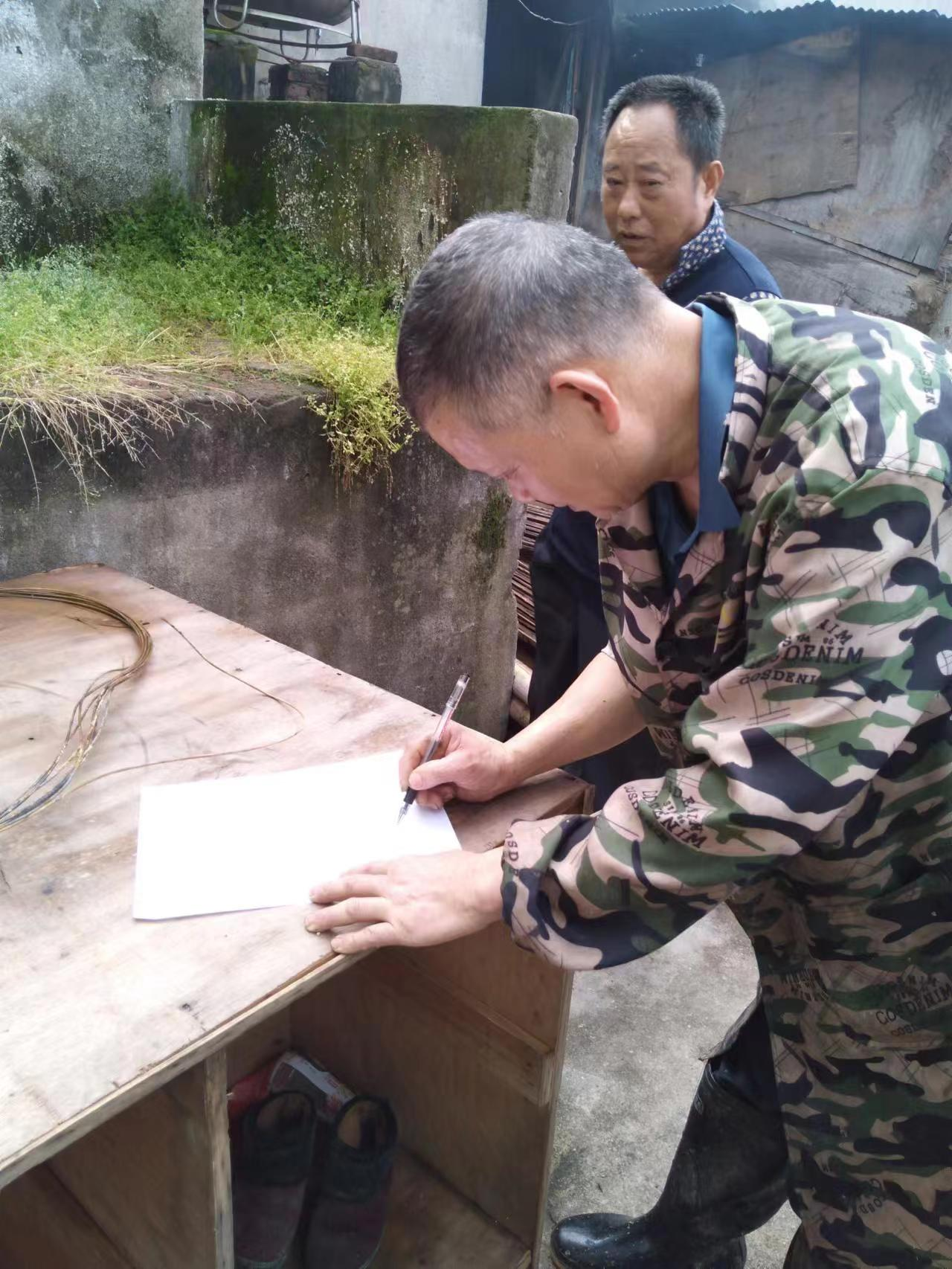 图为养殖户在《畜牧行业安全生产“大检查大整治督查检查记录”》表被检查签字
