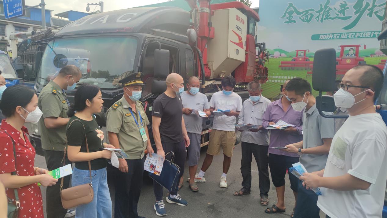 时下正值"三秋"农时季节,外来联合收割机相继涌入我区开展跨区作业。为高质量高效率组织做好秋收、秋种、秋整地机械化安全生产工作,9月20日,市农业农村局执法支队、市农机事务中心、区农业农村局、区卫健局、区交警大队、白关镇政府等单位组成联合检查组,在白关中心广场为跨省来我区作业的160余台联合收割机机手开展促秋收保畅保通行动,为农机安全生产保驾护航。