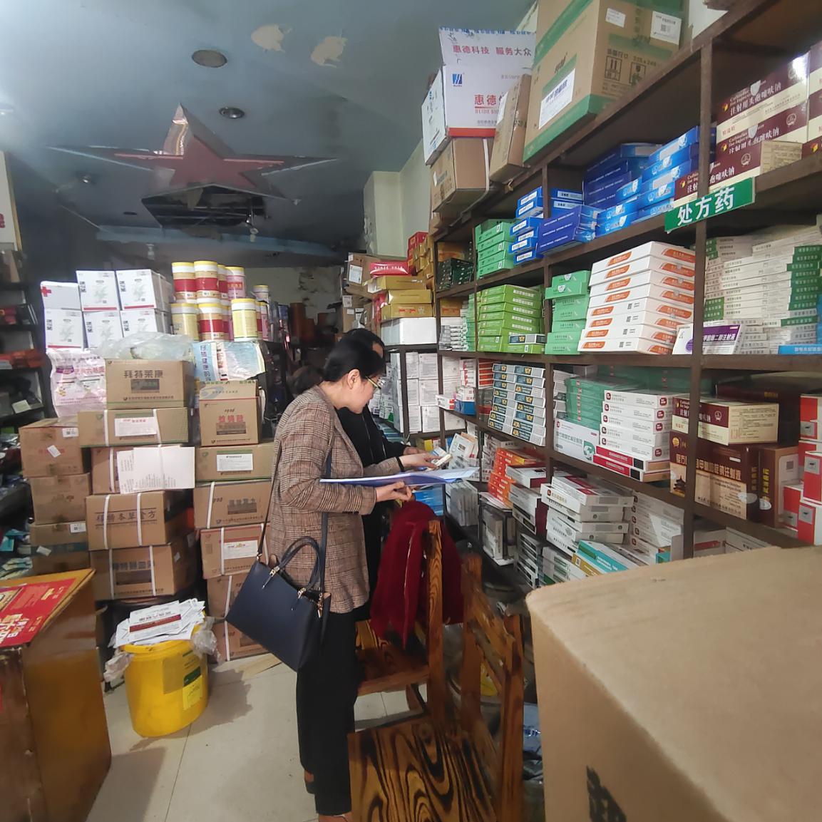 图为区农业农村局工作人员在兽药门店进行规范畜禽养殖用药宣传与检查