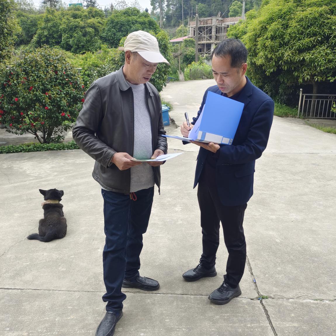 图为区农业农村局工作人员到养殖户家宣传畜禽养殖用药规范