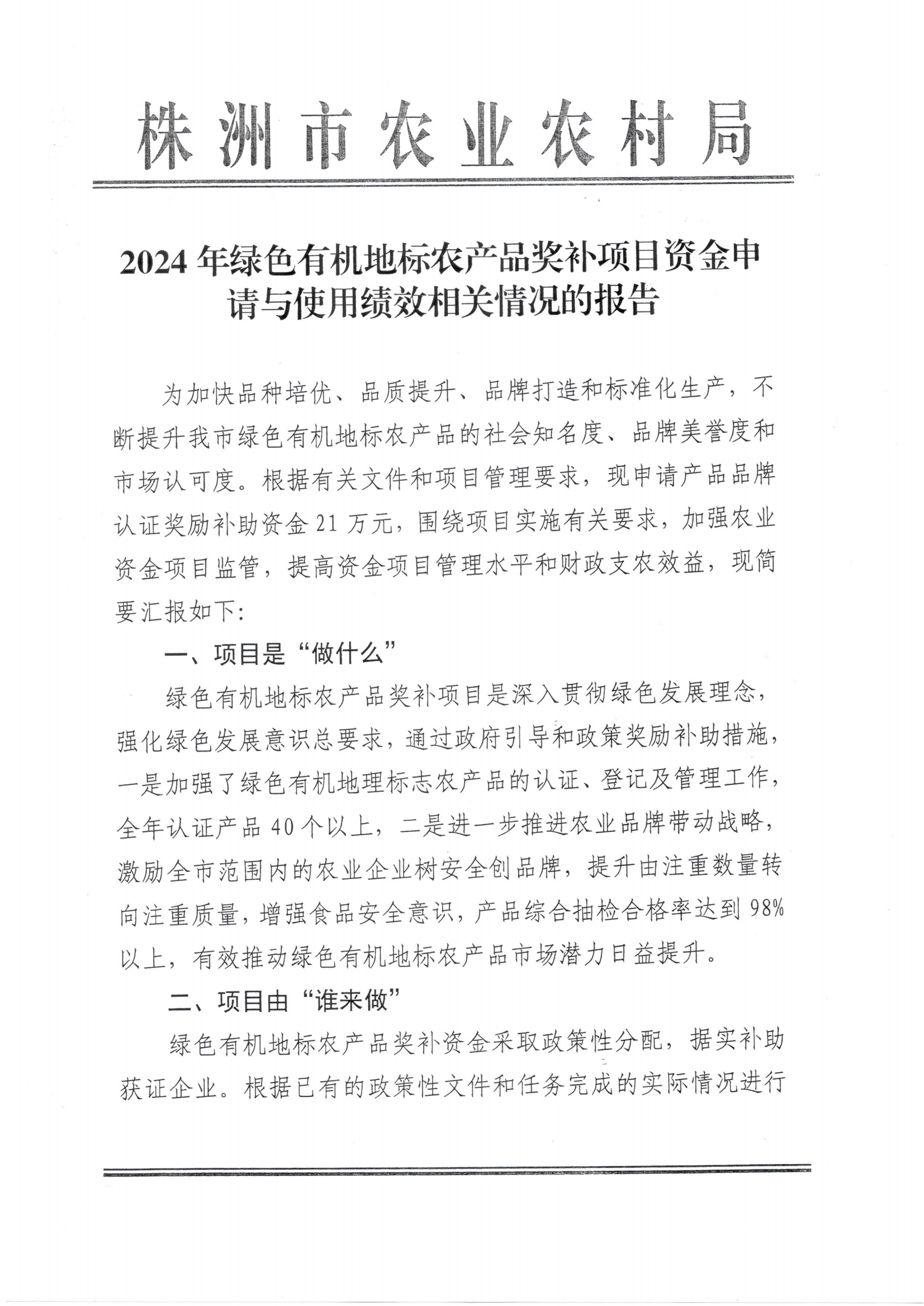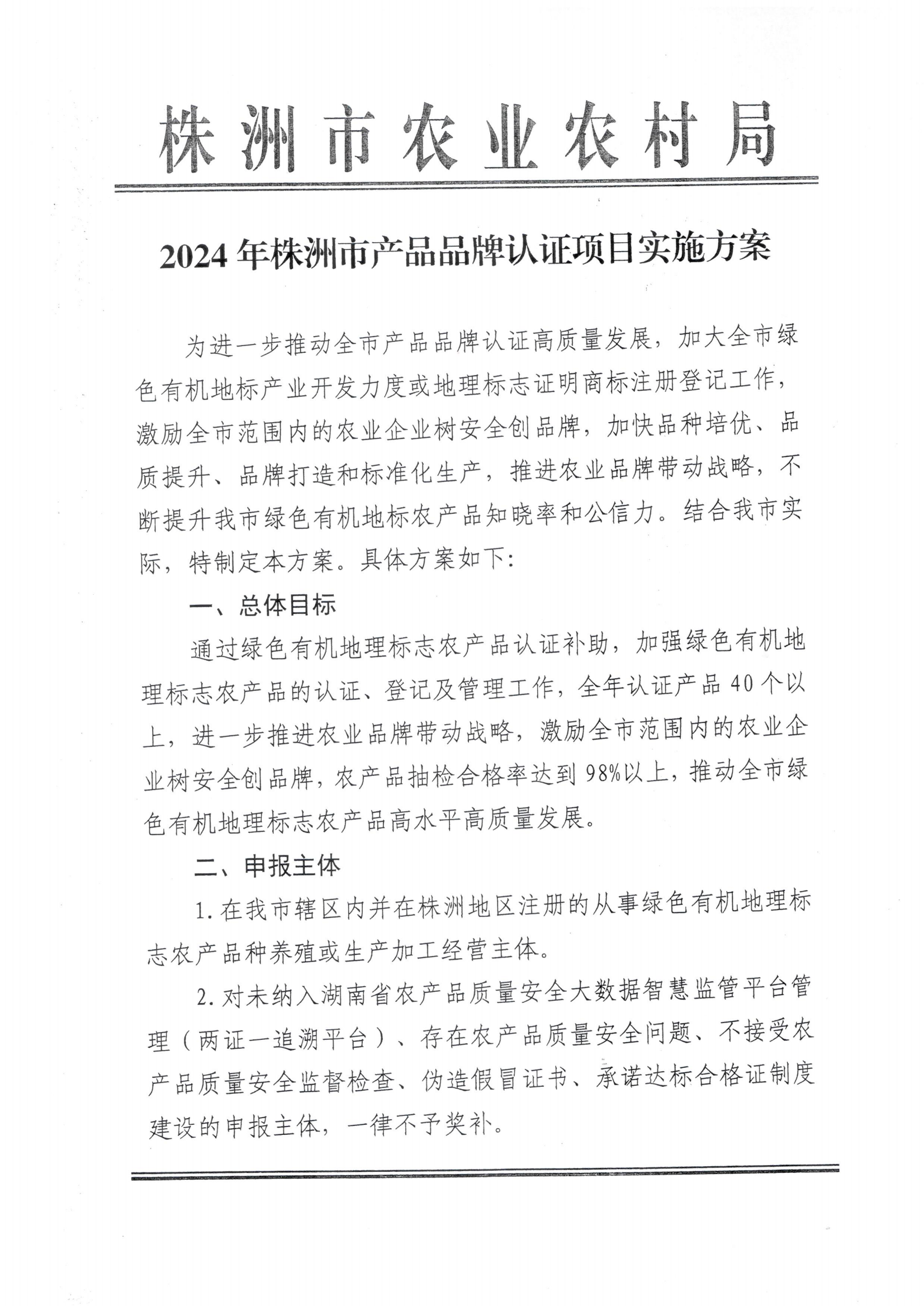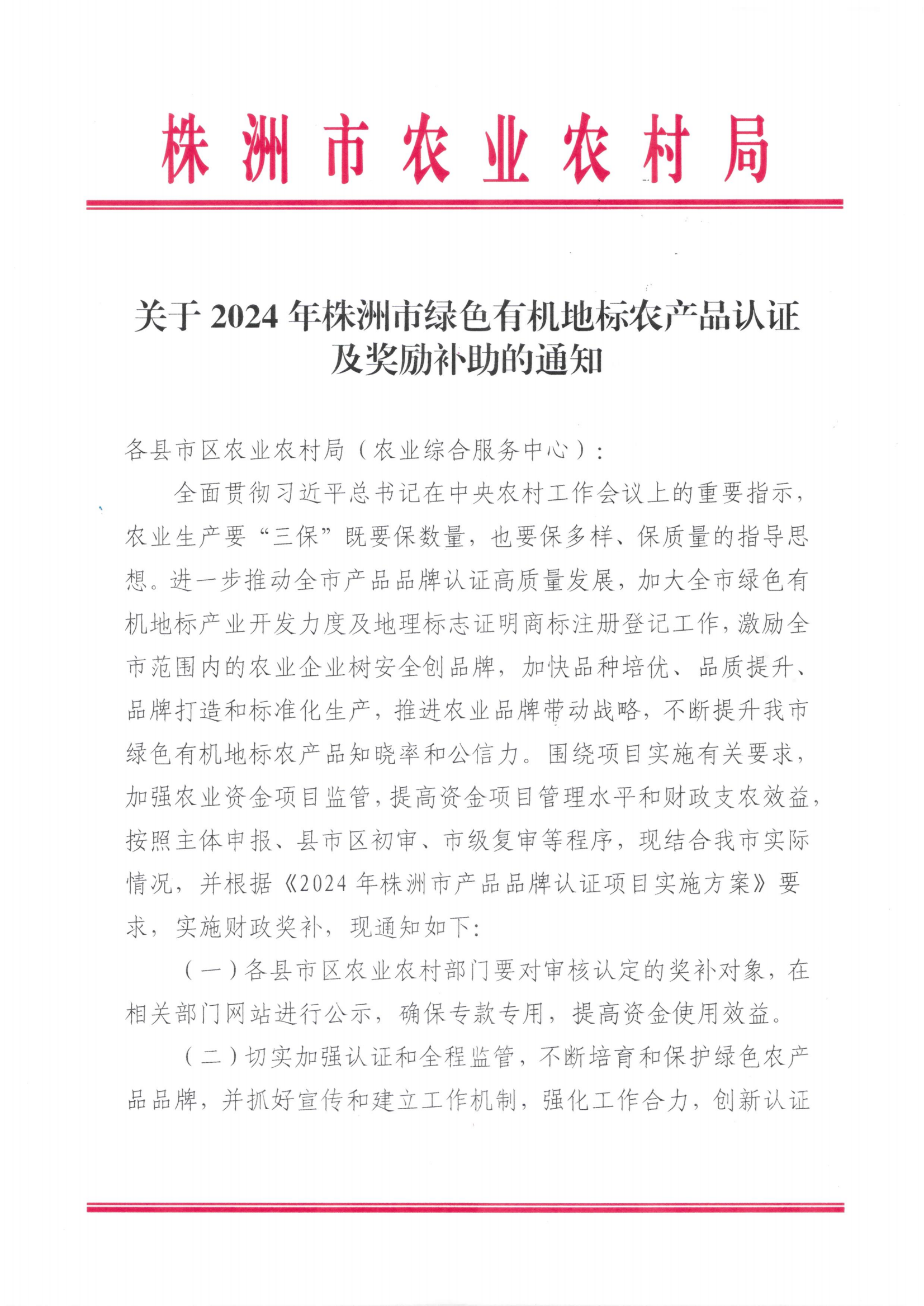关于2024年株洲市绿色有机地标农产品认证及奖励补助的通知