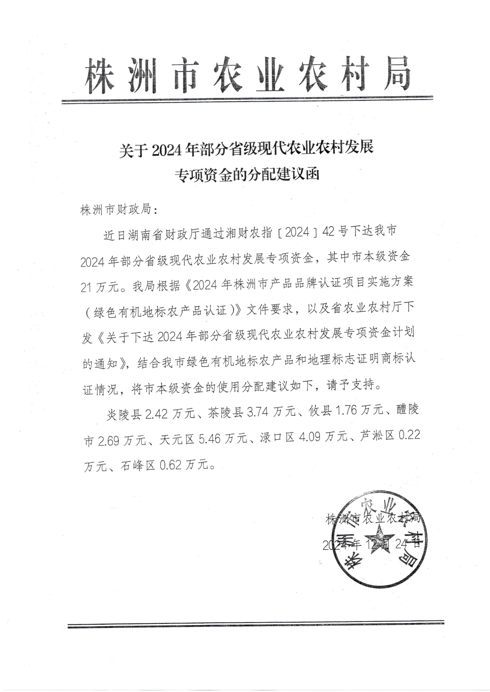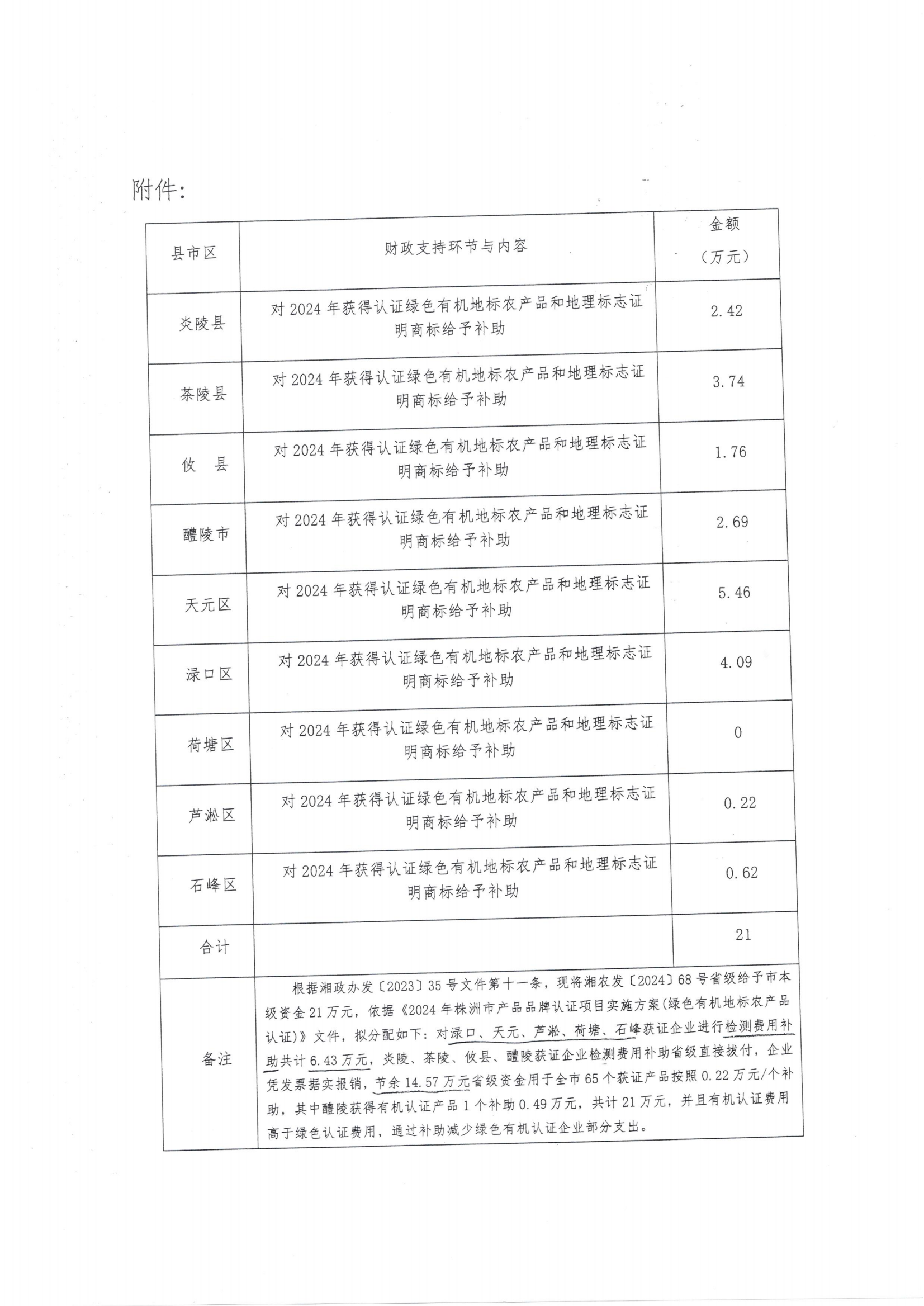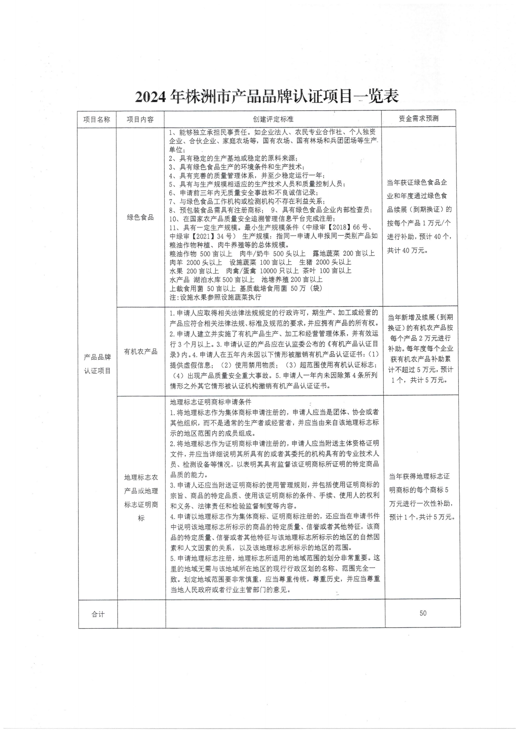 关于2024年株洲市绿色有机地标农产品认证及奖励补助的通知