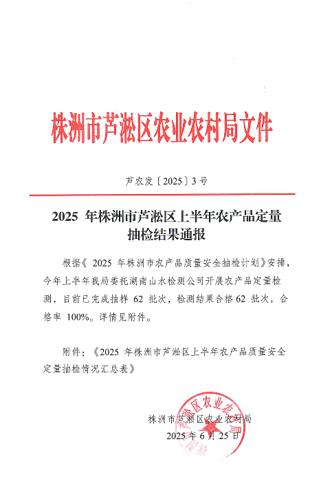 2025 年株洲市芦淞区上半年农产品定量抽检结果通报