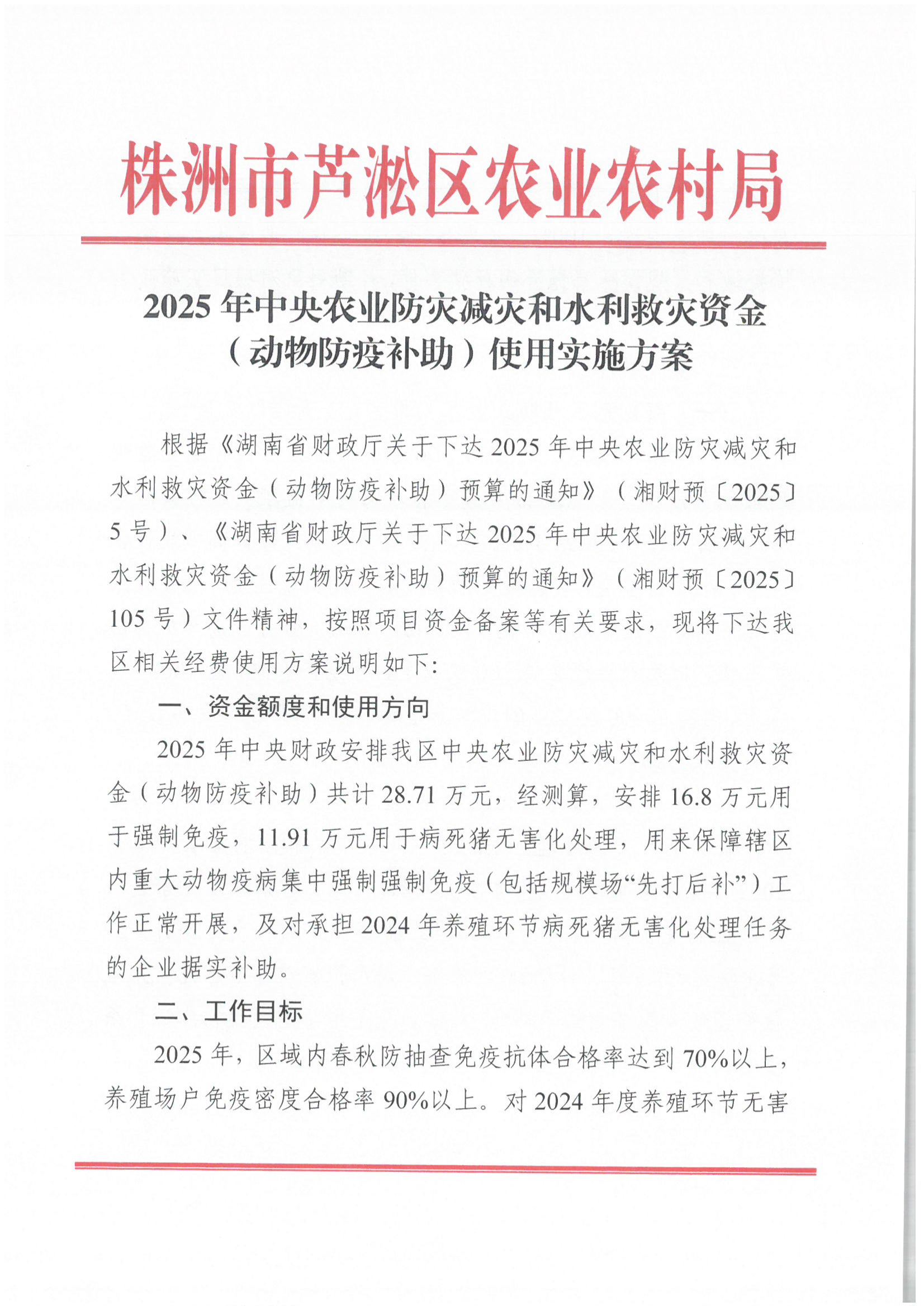 2025年中央农业防灾减灾和水利救灾资金(动物防疫补助)使用实施方案