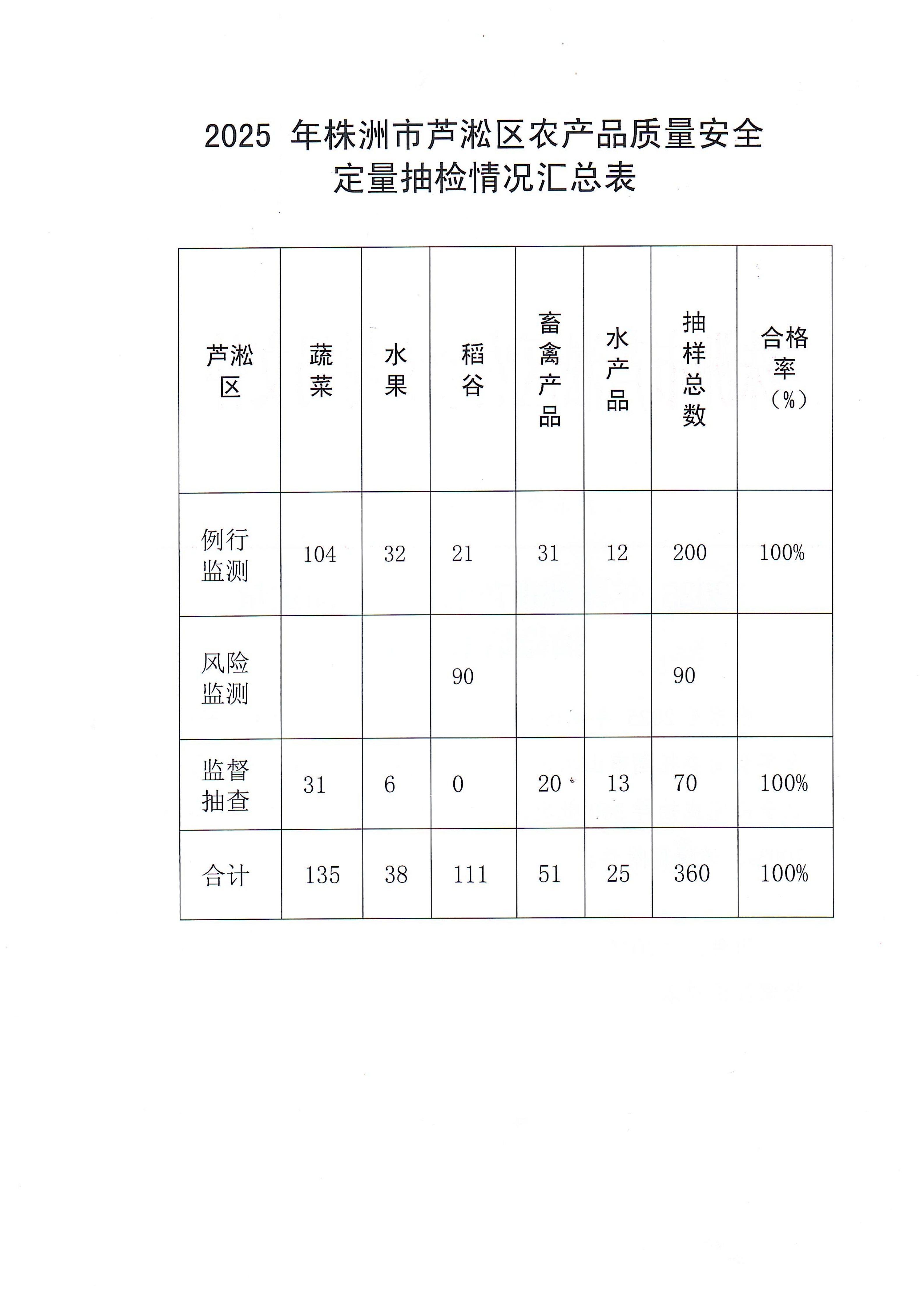2025年株洲市芦淞区农产品定量抽检结果通报