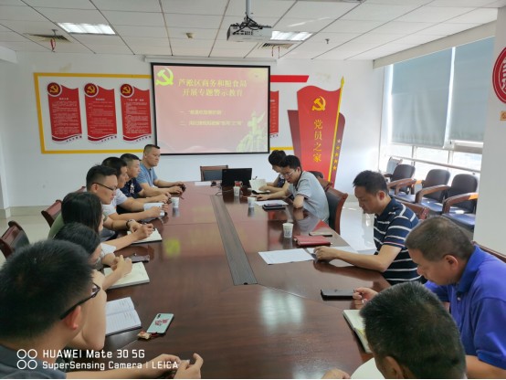 为切实落实区委常委会会议精神,7月22日上午,区商粮局开展专题警示教育,组织学习了市纪委、市监委在《株洲日报》、“株洲清风网”登载的题为《用纪律规矩破解“饭局”之“局”》和“清风株洲”微信公众号同步登载的《都是吃饭惹的祸》两篇评论文章。会议由局班子成员、副局长游波同志主持,全体机关党员干部参加。