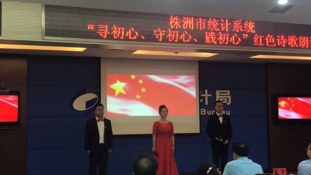 在共产党成立99周年来临之际, 6月18日,株洲市统计系统举办了红色诗歌朗诵比赛和趣味运动会。芦淞区统计局党组高度重视,局长、书记率队,精心组织了3名干部参加诗歌朗诵比赛,10名干部参与到趣味运动会。