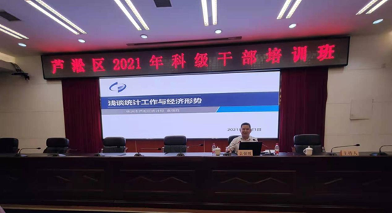 2021年5月21日上午,区统计局党组书记、局长袁强胜受邀到区委党校为2021年科级干部培训班及“青年菁英”成长行动训练营百余名学员做了题为《浅谈统计工作与经济形势》的专题讲课。