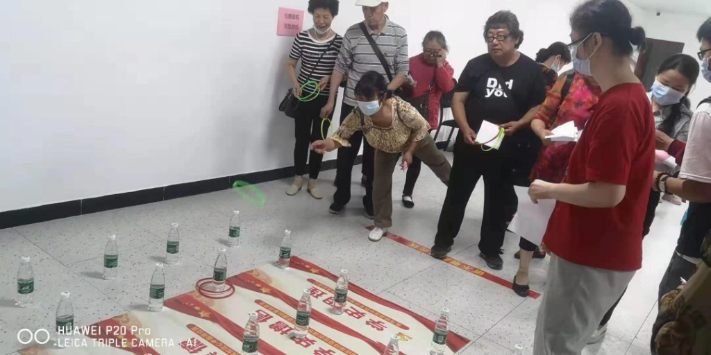 活动前,通过经典的热场游戏“击鼓传花”让党员们找回了童年的乐趣,现场一片欢声笑语,得到红花的党员毫不怯场,纷纷为党员献上歌声与祝福,党员许谷英还领着在座的党员一起唱起红歌《没有共产党就没有新中国》,嘹亮的歌声回荡在整个会场。投圈套瓶、盲盒抽题等答题游戏,也深受党员们的欢迎和喜爱,大家都踊跃参加,积极答题,现场营造出浓浓的学党史热潮。