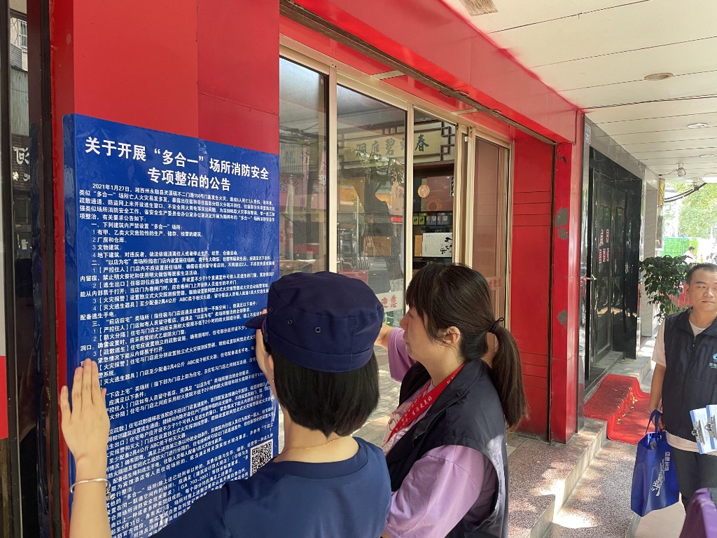 2021年6月15日,芦淞区消防大队吴慧敏带队贺家土街道应急办和大塘冲社区网格员一起,排查辖区内的“多合一”门店,一行认真仔细的检查了门内的消防器材,安全通道、应急设施等,排查安全隐患,劝说居民不要私自乱搭线路,及时维护消防器材和设施。对“多合一”门店要求立即整改,并签订消防安全承诺书和隐患整改通知单,店外张贴“多合一”专项整治公告。还向店主宣传安全知识,要求其重视自身生命财产安全。