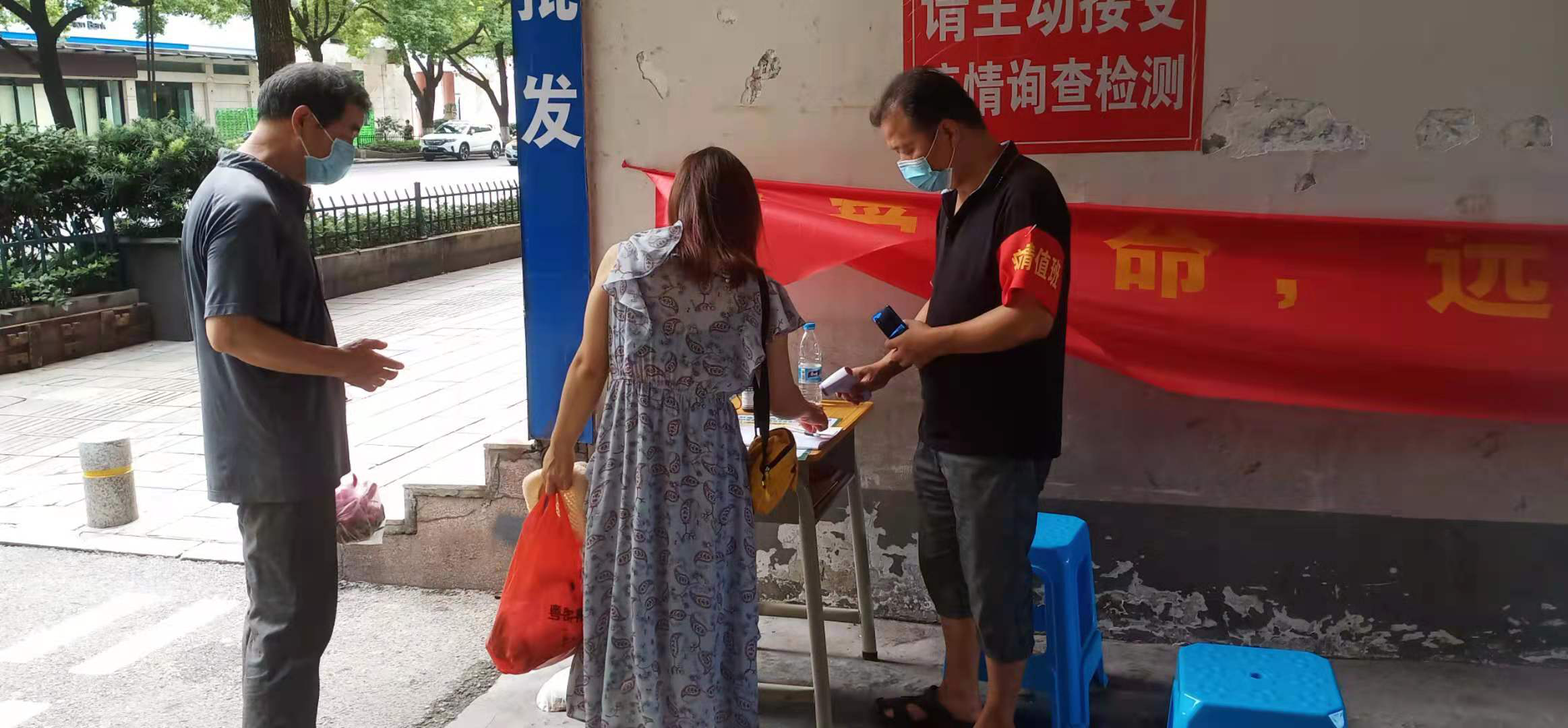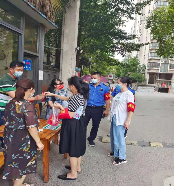 来园社区利用网格化管理,在无人管理辖区唯一出入口设置值守点,对进出入人员及车辆进行测体温、查看健康码、行程码、来访登记,通过线上线下联动,及时充实社区一线排查力量,织就了一张常态化群防群控疫情防控网。