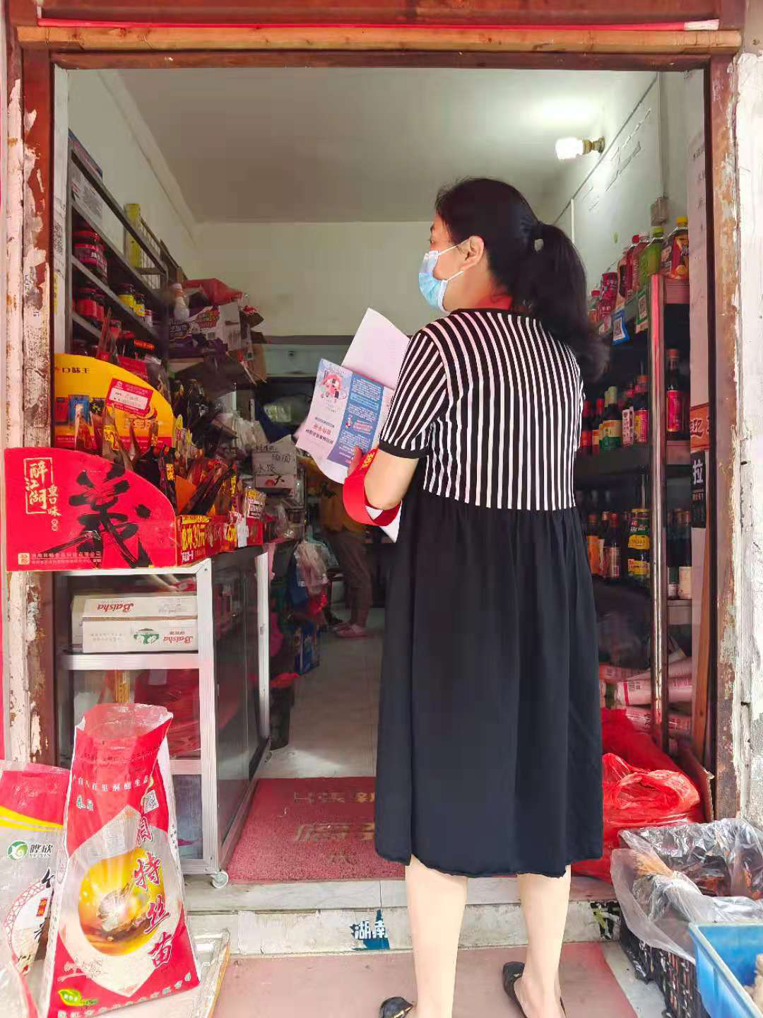 近日,省内多地相继发生疫情,为了有效阻止疫情在辖区发生,“红袖章”们将自身安危放在脑后,顶着三伏烈日穿梭奔走在五小门店,每日走访摸排进行宣传,并在店门口显眼处张贴了“健康码”“行程码”的贴纸,全方位铺开了常态化防控疫情的“大网”。
