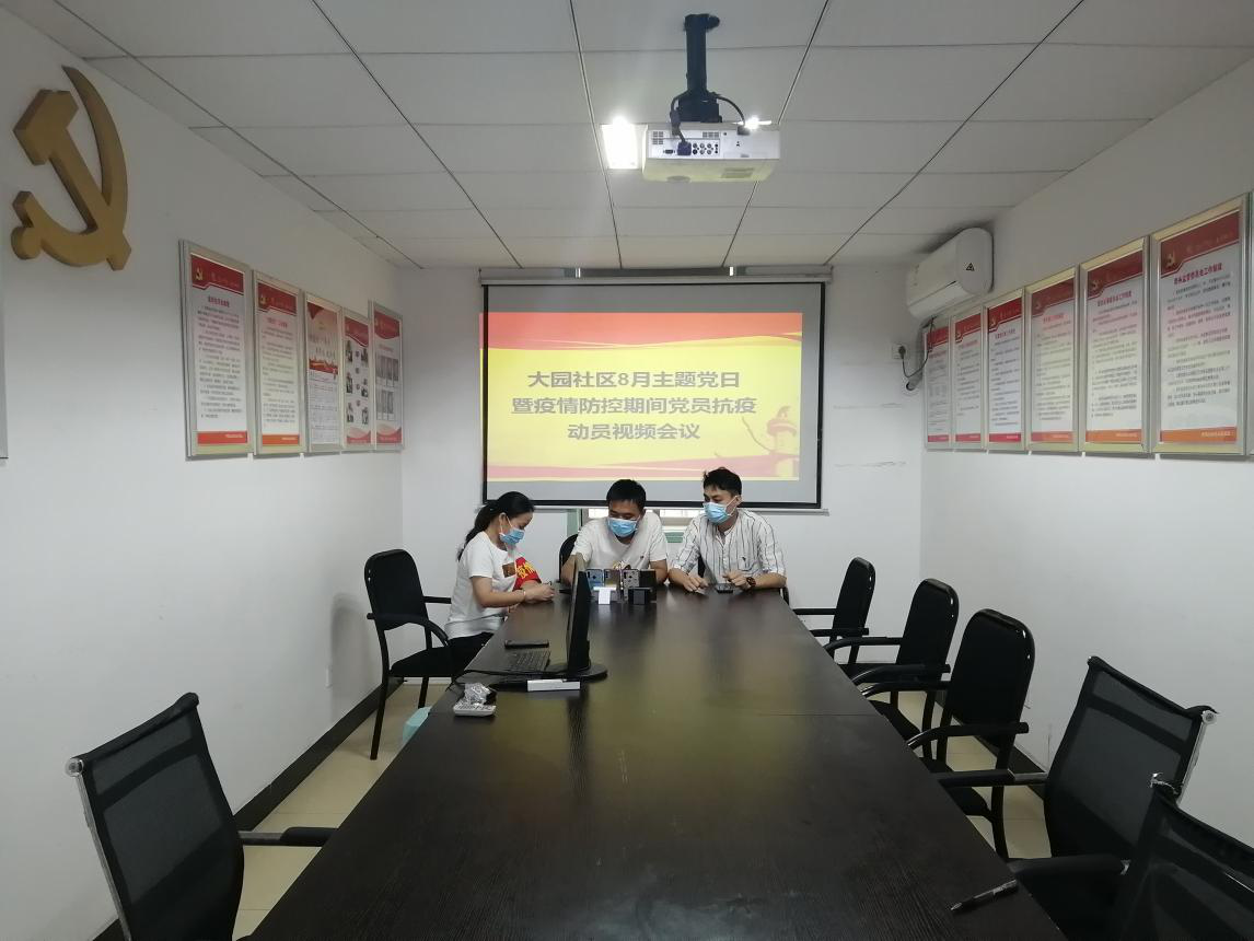 2021年8月7日上午11点 ,大园社区党委组织召开社区8月主题党日暨疫情防控党员抗疫动员视频会议,社区各党支部部分党员、办事处联点领导涂启太主任参加了会议。