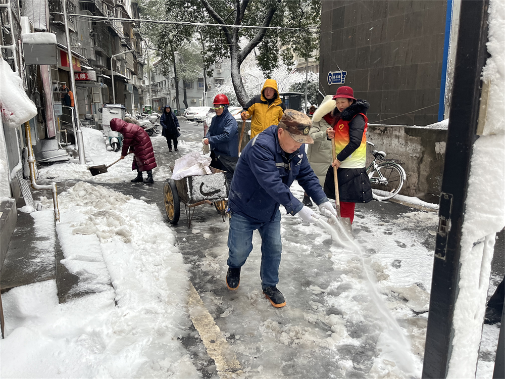 虽寒风凛冽,但大家丝毫没有退却之意,他们携带扫帚、雪铲等工具迅速投入到破冰除雪活动中,大家齐心协力、分工合作、配合默契,铲的铲,扫的扫,给寒冷的冬日增添了一抹温暖的阳光。此外,街道还安排社区网格员第一时间对各网格开展了巡查工作,检查网格内树木、电线、雨棚等受损情况,并宣传用火、用电安全使用知识。