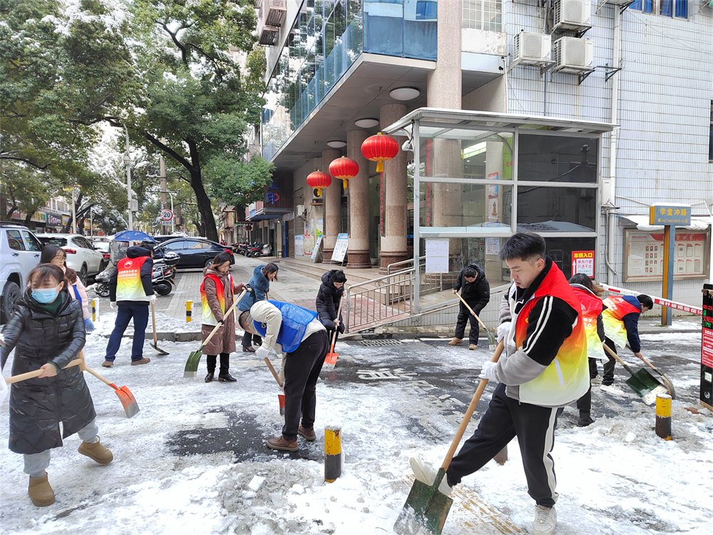 2024年的第一场雪如约而至,株洲大地美不胜收,但这漫天大雪也为居民的生活带来了不便和安全隐患。为应对低温雨雪冰冻灾害工作,保障居民群众出行安全和道路畅通,1月22日至23日,贺家土街道河长办迅速组织党员、志愿者在辖区内开展铲雪除冰志愿服务活动。街道、社区微信群里一声号令,100多名工作人员及志愿者紧急上岗,清理主干道、小区内道路上的积雪、暗冰,呈现出一派红红火火的劳动场面。