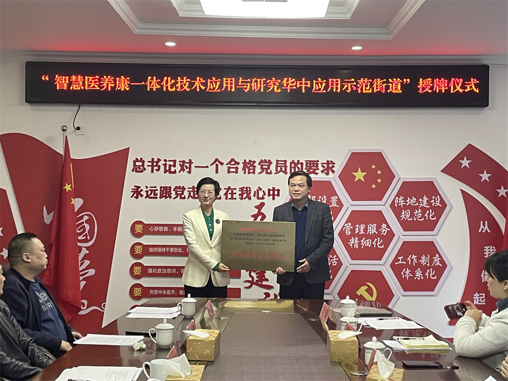 3月20日上午,贺家土街道与湖南省直中医院举行“智慧医养康一体化技术应用与研究华中应用示范街道”授牌仪式,湖南省直中医院党委副书记、院长伍世葵一行7人,芦淞区卫健局副局长申建武、街道办事处党工委书记周霞、主任吴鹏等相关人员参加授牌仪式并举行座谈会,会议由吴鹏主持。