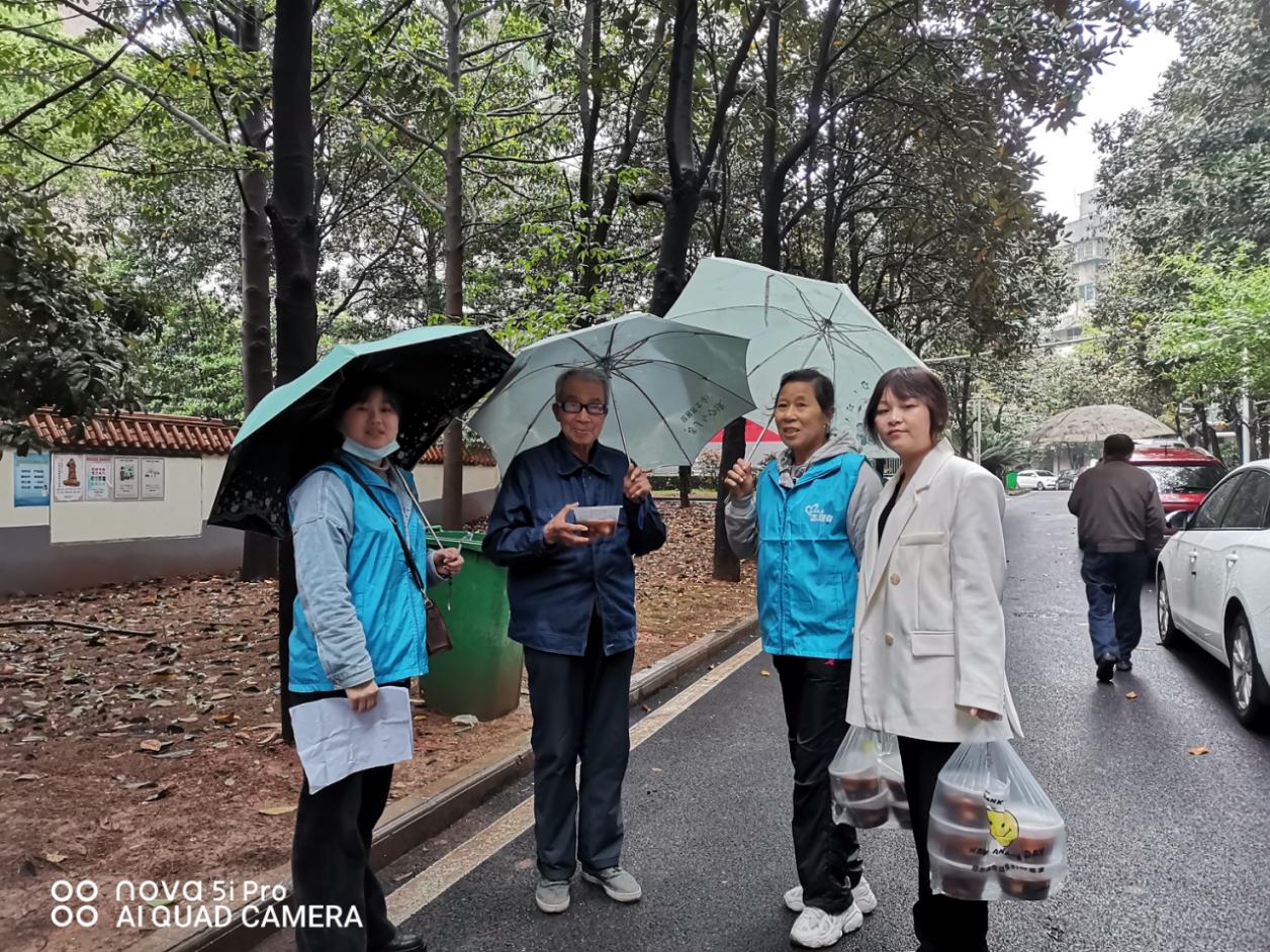 社区困难老人张希国叔叔接到社区的电话后,连忙下楼来迎接社区一行人,捧着热乎的鸡蛋,不断地对大家说着感谢的话语。