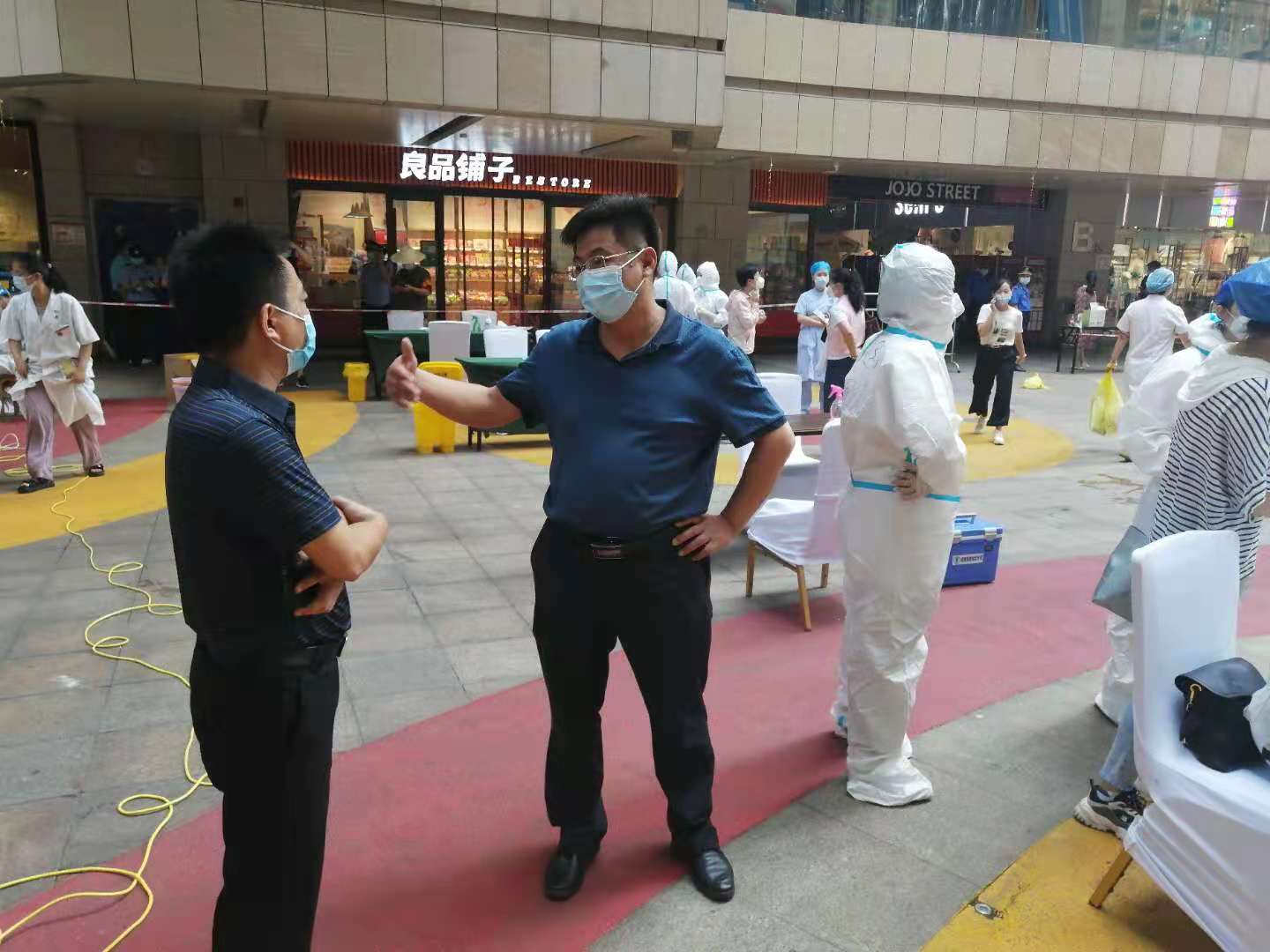8月8日上午,株洲市芦淞区人大常委会党组书记、主任付访华在建设街道沿河社区大汉希尔顿.悦中心第二轮全民免费核酸检测点指导工作,并为烈日下坚守岗位的基层一线工作人员送去了防疫物资。