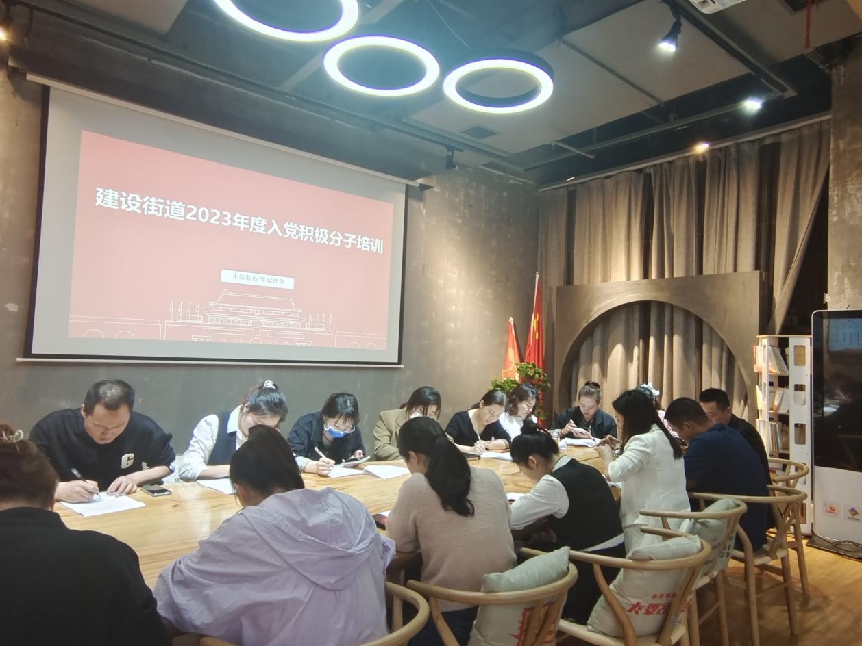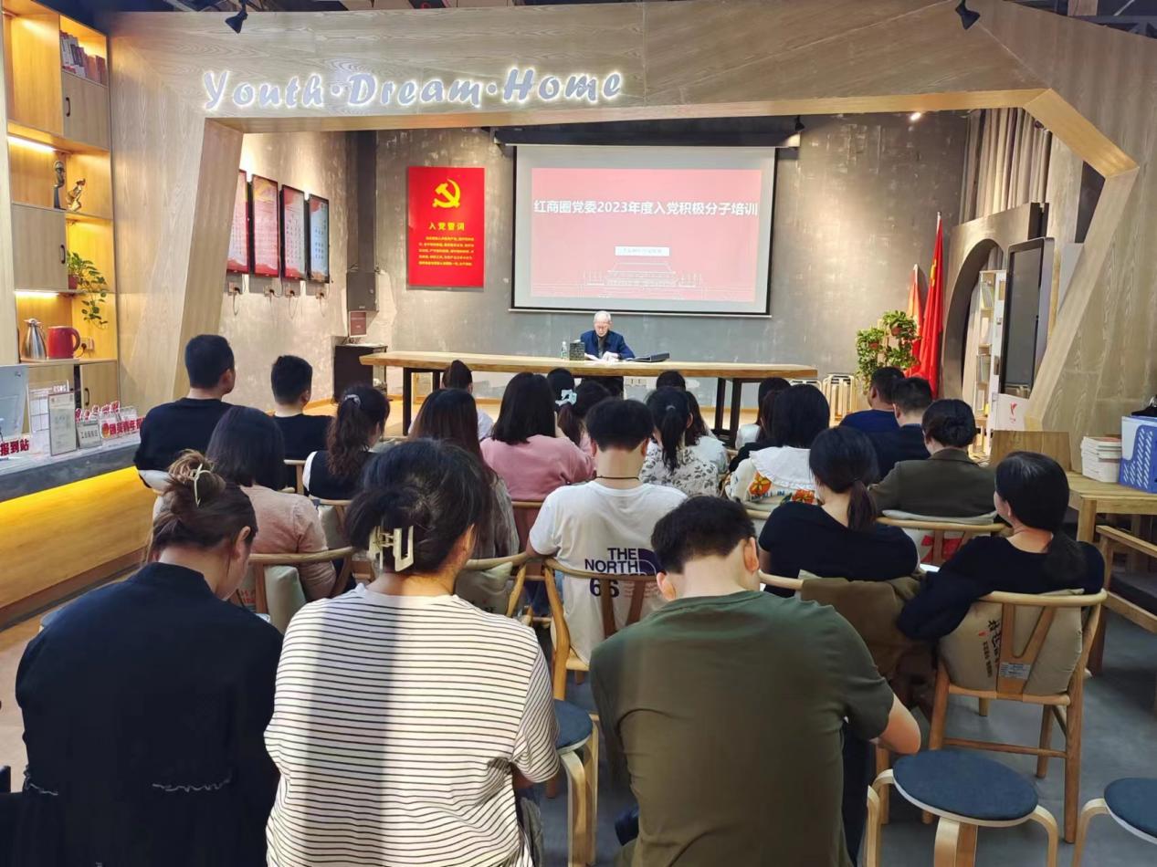 为严格党员发展程序,加强入党积极分子对党的基本理论知识的理解,提高理论水平,确保新党员的发展质量,4月14日上午,建设街道党工委、红商圈党委在红商圈党群服务中心(大汉悦中心负一楼)开展建设街道暨红商圈党委2023年度入党积极分子培训。