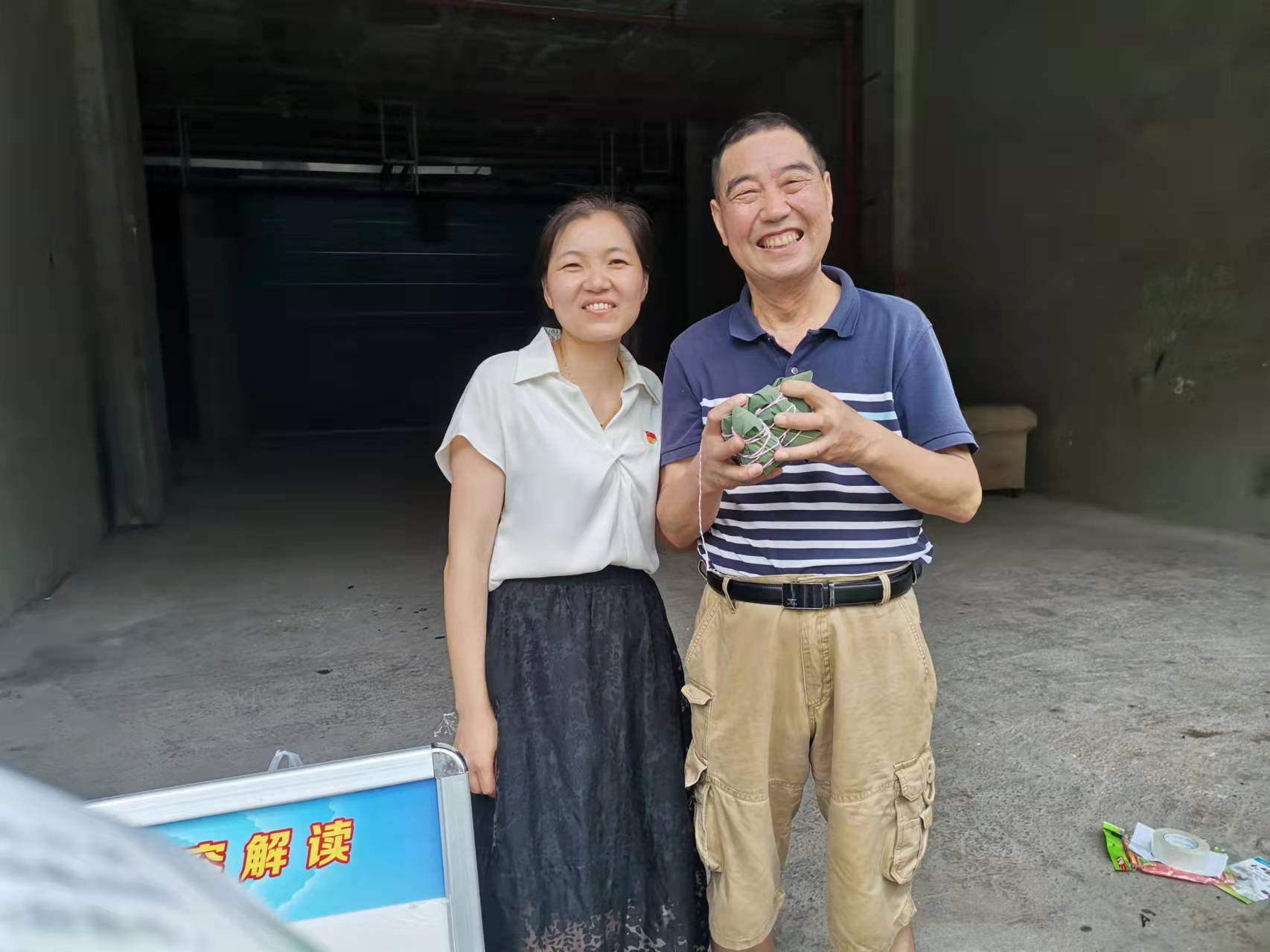 大家伙精神饱满、劲头十足,糯米、金丝线、蜜枣、粽叶在他们灵巧的手中翻转飞舞,变成一个个美味的粽子。社区工作人员、物业公司负责人和居民代表把包好的粽子送给前来参加的热心居民和社区困难家庭、空巢老人和独居老人等,让大家一起感受节日的气氛。