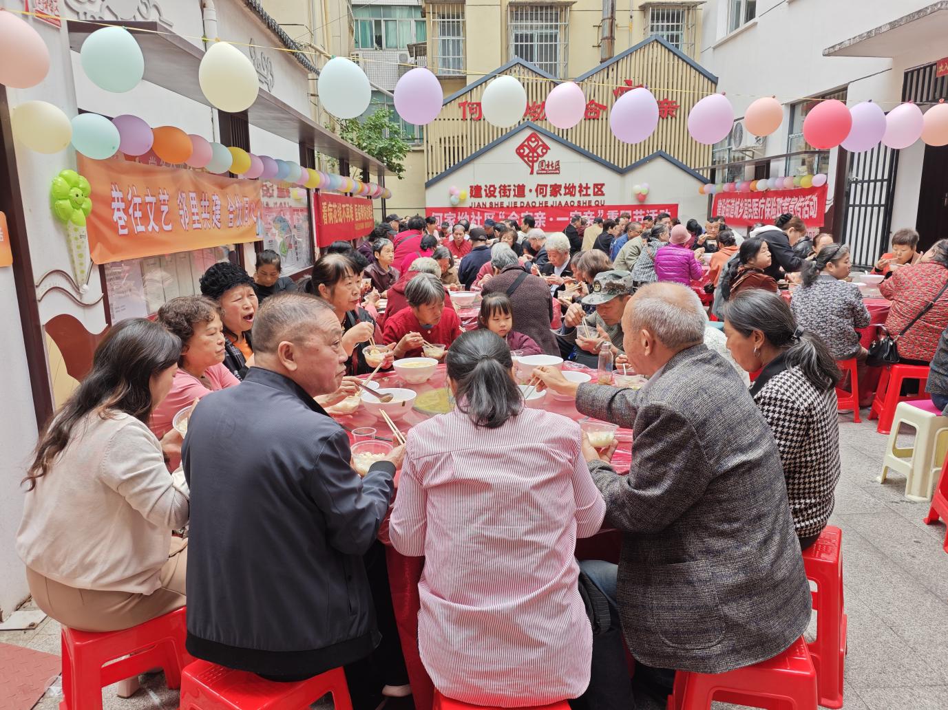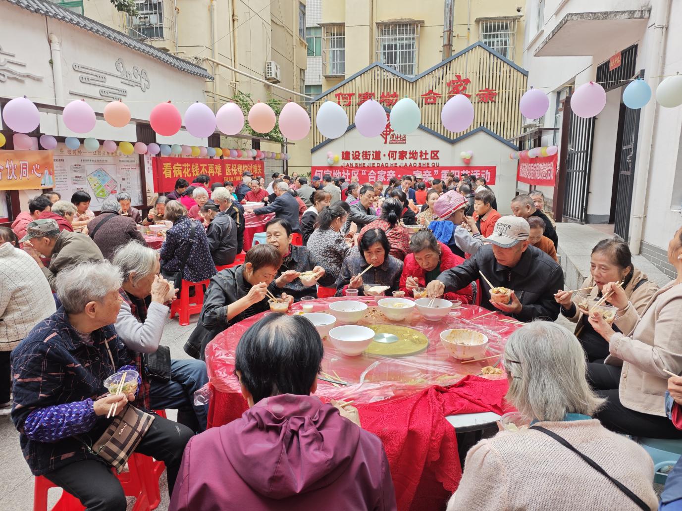 为弘扬中华民族尊老敬老的传统美德,营造“敬老睦邻”的良好氛围,10月29日,何家坳社区(网格)联合小区党支部在社区前坪热闹开席“敬老爱亲庆重阳,和谐邻里幸福长”百家宴活动,150余位居民欢聚一堂,以美食为媒,共话邻里深情。