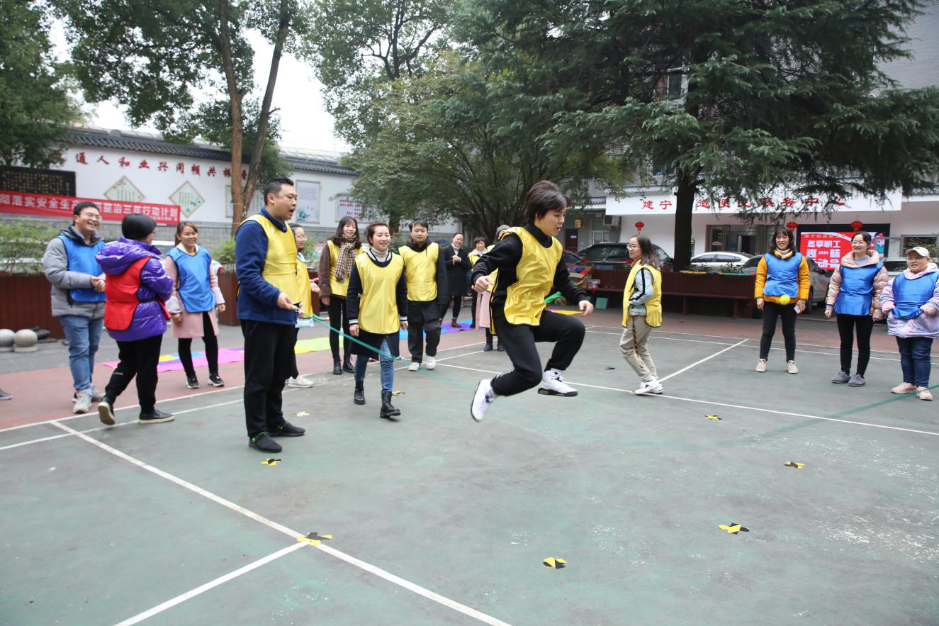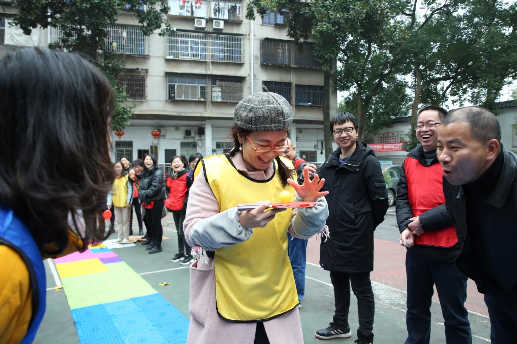 活动组织者精心为大家设计了齐心跳大绳、一圈到底、不倒森林、托乒乓球指压板往返跑、摸石头过河、抖抖球六个比赛项目。