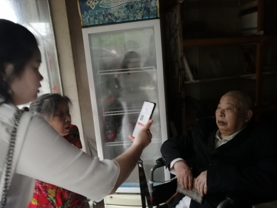 来到唐师傅家中,网格员掏出自己的手机,打开软件,弹出照相框,老人跟着系统提示音,点头、摇头或是眨眼睛,不费多时,养老认证便完成了。随后,社区党支部书记刘丽虹仔细询问老人的生活状况和身体情况,并叮嘱老人保重身体,有需求及时与社区联系,使老人倍感温暖。“感谢社区一直以来对我们的关心和照顾,我们两口子又不会使用智能手机,谢谢社区为我们提供便捷服务,解决了我们的难题。”面对网格员贴心服务,唐师傅的妻子感激的说道。