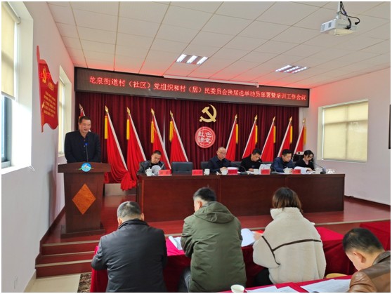为深入贯彻落实市委、区委会议精神,扎实开展村(社区)“两委”换届选举工作, 12月10日上午9点,龙泉街道在桠枝塘社区三楼会议室召开村(社区)“两委”换届选举工作动员部署暨培训工作会议。街道全体党政领导班子成员、机关指导组全体成员,龙泉派出所相关领导,村(社区)书记和党建专干参加会议,区委组织部副部长、区委两新工委书记(兼)万里到会指导。