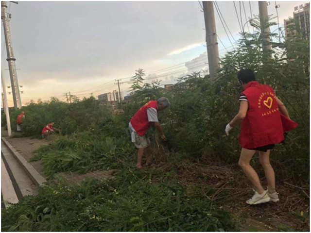 7月23日,龙泉村村支两委带领党员志愿者充分发挥模范带头作用,来到果园路进行剪枝和除草活动,在清理现场,党员志愿者发扬不怕累、不怕苦的精神,利用柴刀等工具对路边繁茂的树枝及杂草进行清理,经过1个多小时的清理,人行道露出了崭新的面貌,路过的行人及村民对此活动纷纷点赞。
