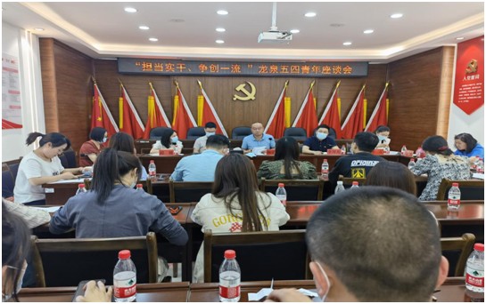 参观完八叠支部后,龙泉的青年干部们在街道召开了一场主题为“担当实干、争创一流,青年干部怎么干”的座谈会,胡子凤等十位青年干部结合自己的工作实际,畅谈人生理想、分享工作经历并提出对街道、村(社区)工作的建议。