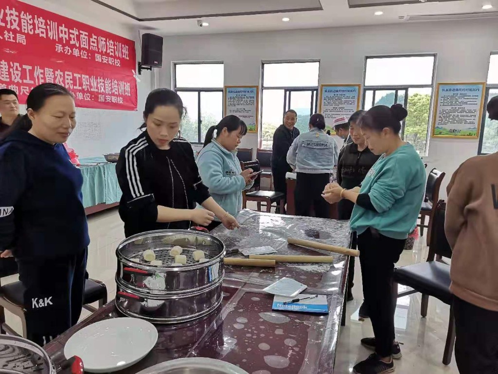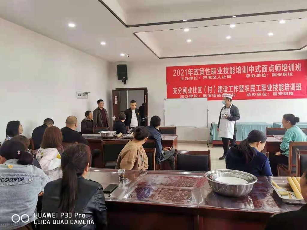 为响应党和国家支持、鼓励劳动者积极创业就业的号召,传承“中式面点”制作工艺,4月19日上午,在区人社局、枫溪街道办事处的指导下,曲尺村结合党史学习教育,携手国安职校在村部活动中心开展了“我为群众办实事”——中式面点师免费培训活动。参加培训的有村民小组长、居家妇女、待业青年,共计约30人。