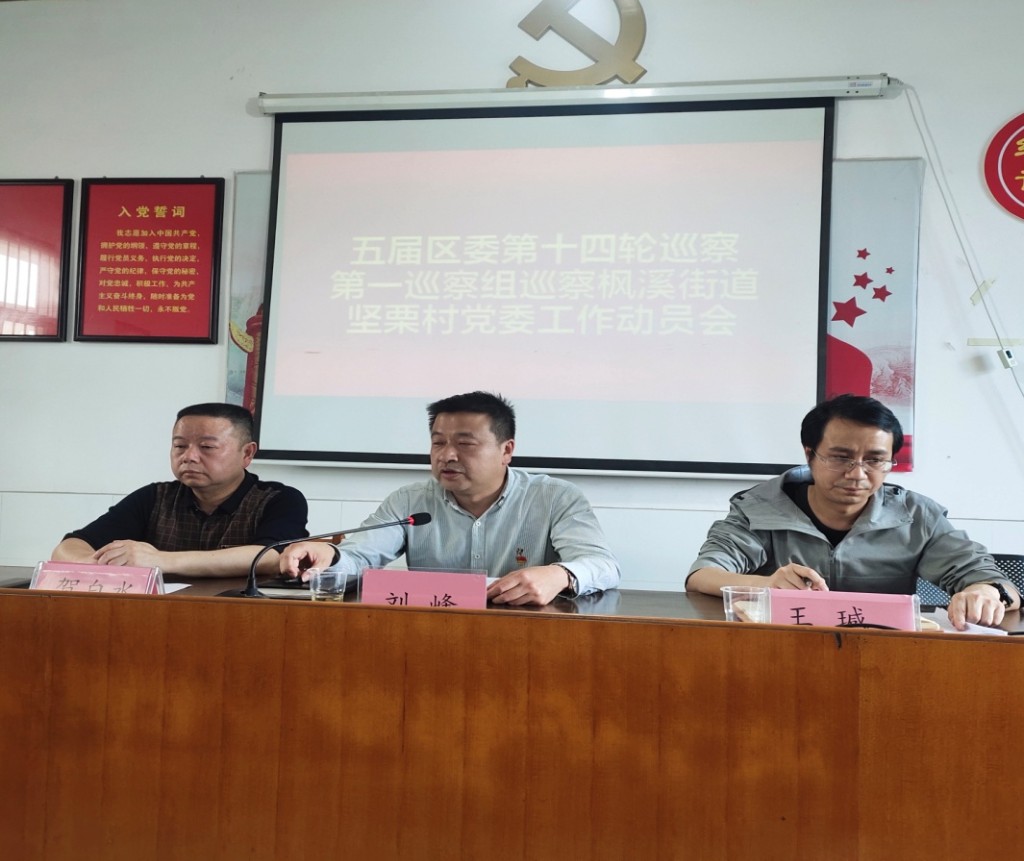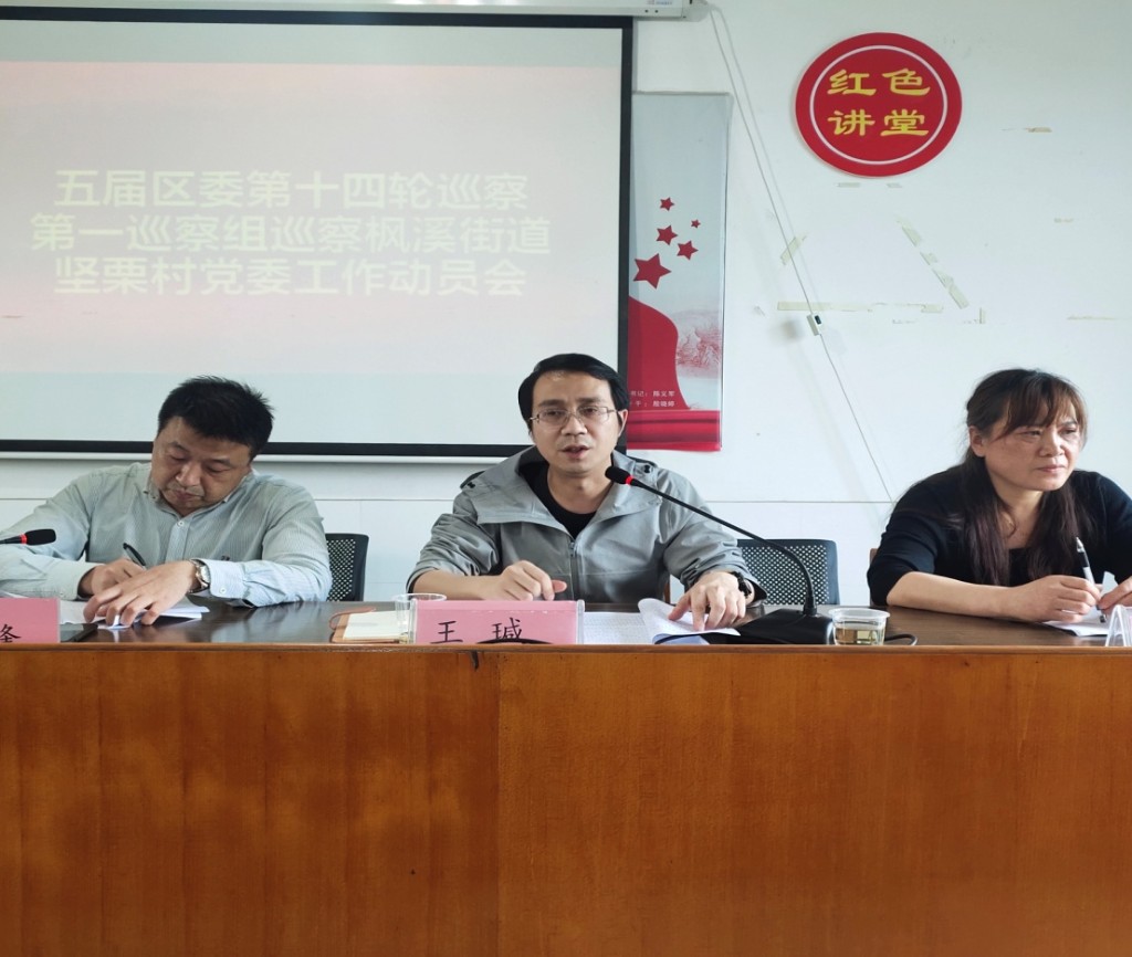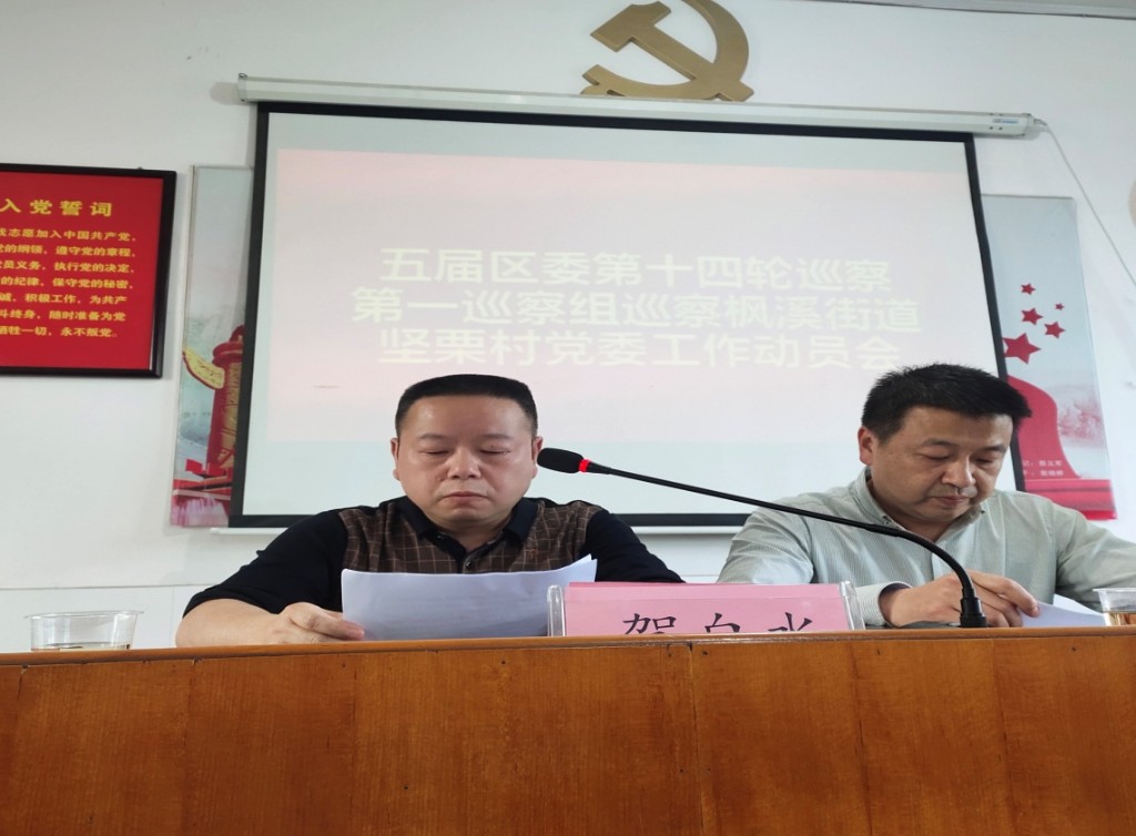 4月23日下午,区委第一巡察组召开巡察坚栗村党委工作动员会。区纪委常务副书记、监委副主任、区委巡察工作领导小组成员王瑊,区委第一巡察组组长贺自水,副组长周迪坤,巡察员陈烨,联络员梅璇,枫溪街道党工委书记刘峰、枫溪街道党工委副书记朱诗豪、枫溪街道纪工委书记王庆伟、枫溪街道办事处副主任言昊夫,坚栗村全体干部、党员、监督委员会成员、议事委员会成员、村民小组长参加会议。会议由坚栗村党委书记陈让梨主持。