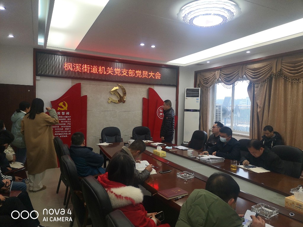 2022年1月6日下午,枫溪街道机关党支部在三楼会议室召开1月份“发扬党内民主,选举二十大代表”主题党日活动和党员大会,会议由枫溪街道机关党支部书记高鑫同志主持,全体党员参加会议。