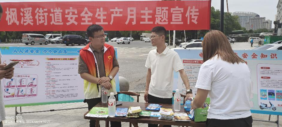 今年6月是第23个全国“安全生产月”,为进一步推动安全生产责任落实,全面提升群众安全生产素质,有效防范和遏制生产安全事故发生,真正将“人人讲安全、个个会应急”的宗旨深入人心,枫溪街道团工委迅速行动,联合街道应急管理部门,与青年志愿者深入社区开展安全主题宣传活动。