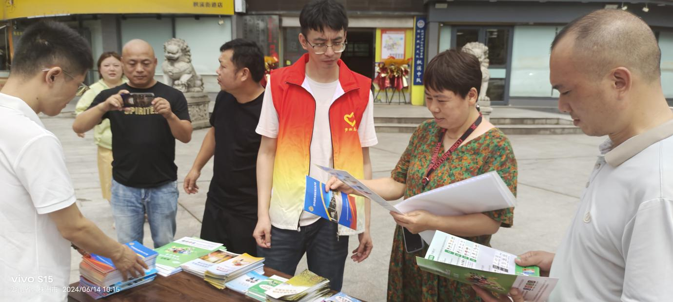 街道团工委组织团员青年和青年志愿者,通过为辖区居民发放安全宣传资料、现场讲解等方式,向过往群众普及防灾减灾知识,包括如何预防火灾、地震等自然灾害,以及在灾害发生时如何正确逃生和自救,增强居民消防安全防范能力;同时对辖区商铺普及消防安全知识要点及灭火器如何正确使用,提醒商铺不要堆积易燃物,保持消防通道畅通,杜绝安全事故发生,维护安定生活环境。
