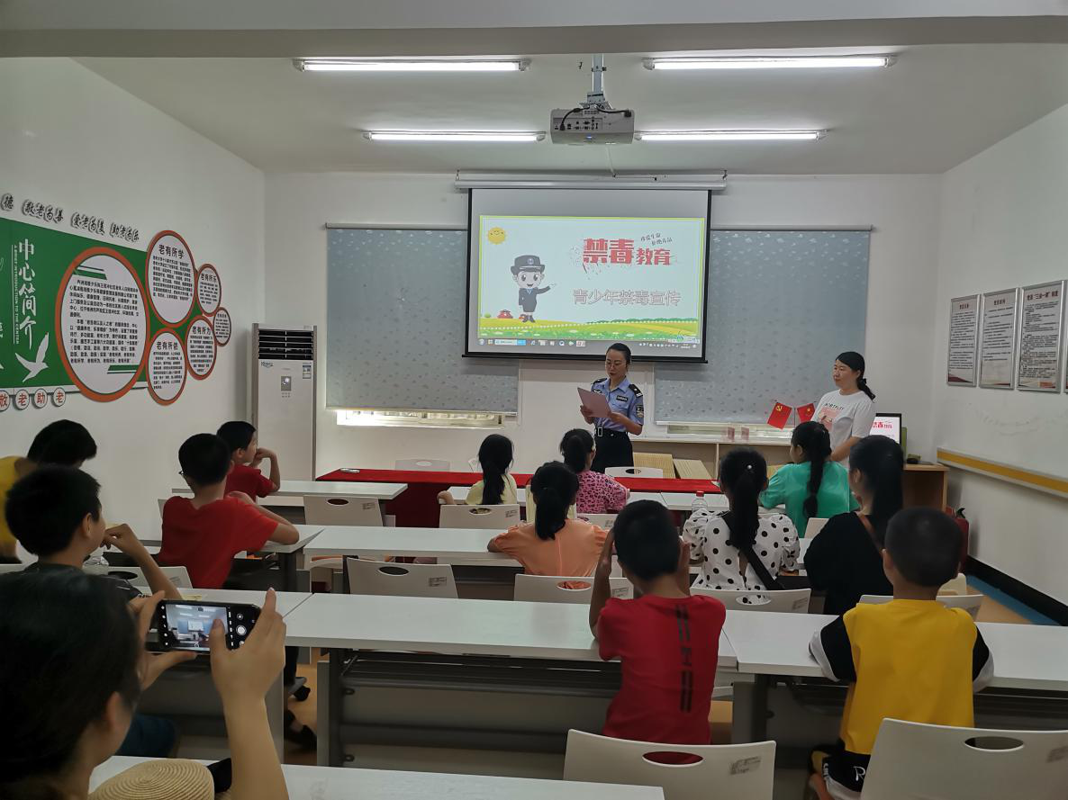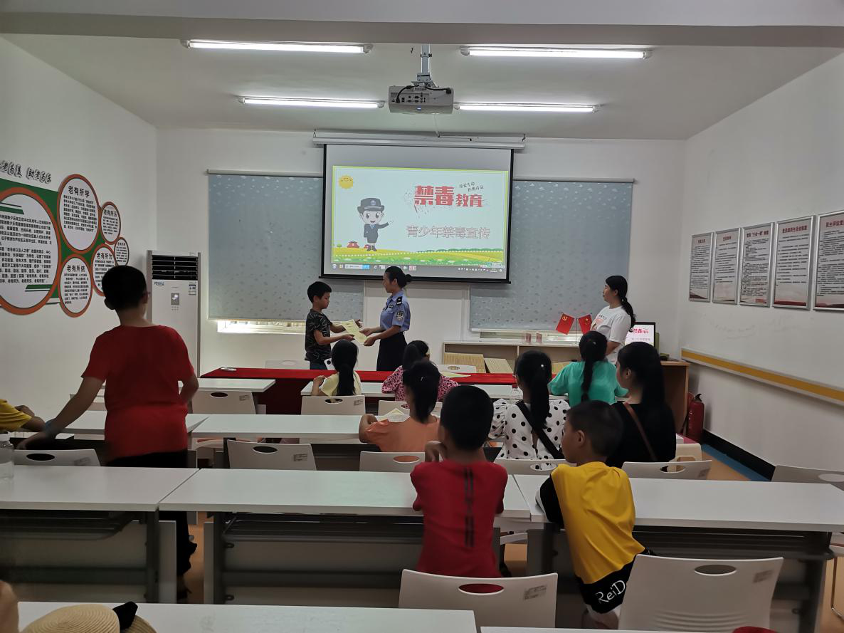活动期间,庆云派出所民警余兰深入浅出的向青少年讲解了毒品的知识、毒品的危害。采用图文并茂的幻灯片及宣传图板的形式向青少年详细讲解了毒品对个人、家庭、社会的危害,如何识别毒品、拒绝毒品等方面知识,还和青少年们进行互动,以加深他们对毒品知识的理解及记忆。接着,孩子们做为小小志愿者和社区巾帼志愿者一起在居民区开展禁毒宣传。小小志愿者们在巾帼志愿者的带领下发放禁毒宣传册,给居民、 门店商铺等人员比较密集、流动性较大的地方进行发放,并把社区教给他们的禁毒知识进行广泛深入的宣传。让居民懂得如何识别毒品、如何辨别吸毒人员以及了解毒品的危害等,并通过资料上不同案例的微宣讲,警示大家懂得居民不涉毒,社区无毒品;学生不吸毒,校园无毒品以提高青少年抵制毒品诱惑的能力,预防毒品给青少年带来的危害,让孩子们拥有一个健康而有意义的人生。
