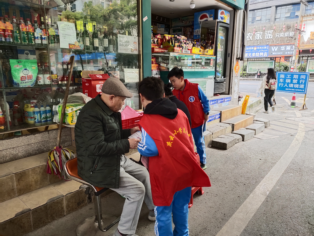 首先,由庆云山小学副校长熊琴韵进行分工。高年级一组16人开展捡垃圾活动,低年级8人开展发放垃圾分类宣传资料,社区网格员也分布在两个不同的组里一起动手参与。很快,两个小组分开行动,一个小组对小区居民及周边门店发放垃圾分类宣传资料;另一个小组在小区内捡垃圾,两人一组,一人拿着铁钳,一人拿着垃圾袋,相互配合,小小志愿者们干得非常认真,不放过草地上和树丛中的任何垃圾。